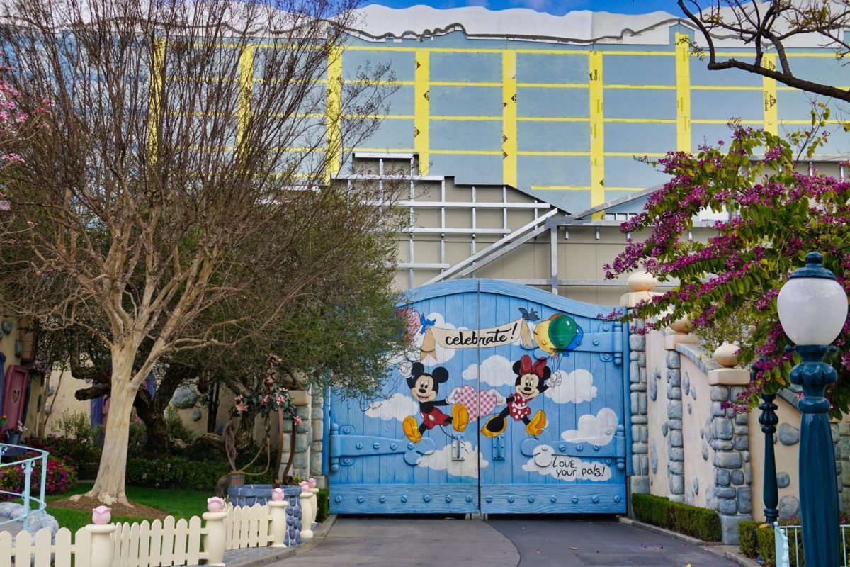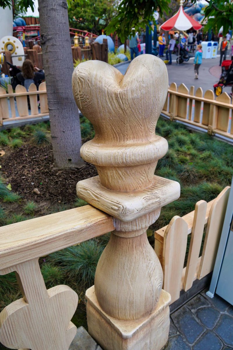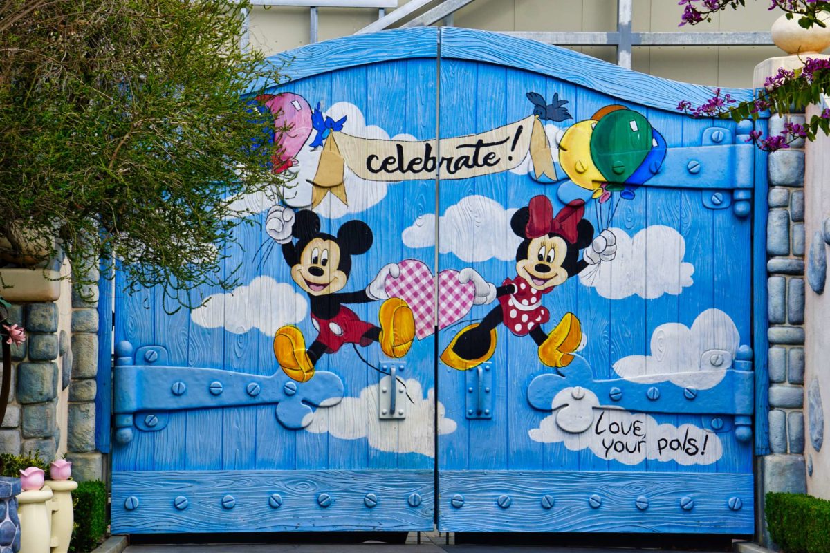 On the walkway between Minnie’s House and Goofy’s Gas Station is this gate featuring the “Celebrate!” mural.