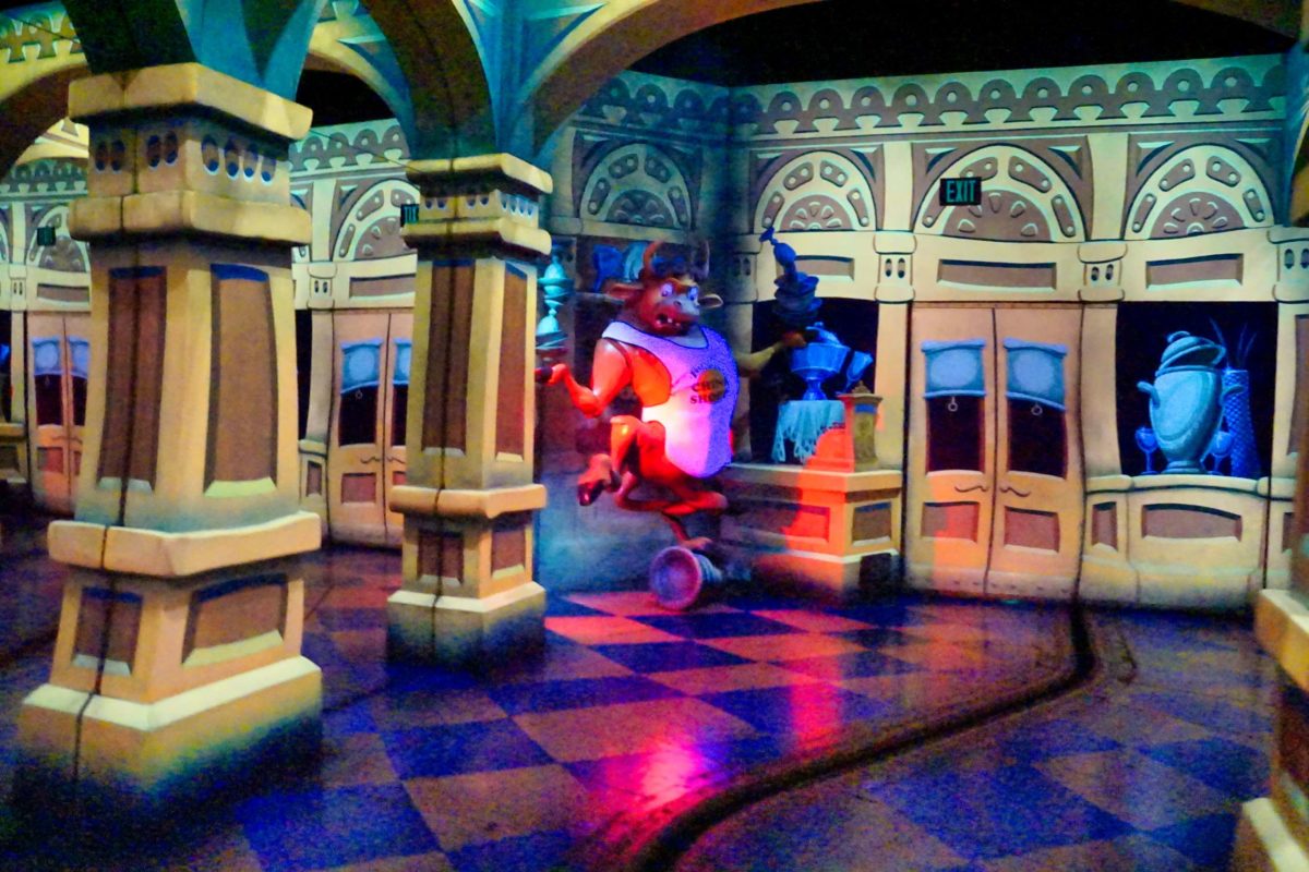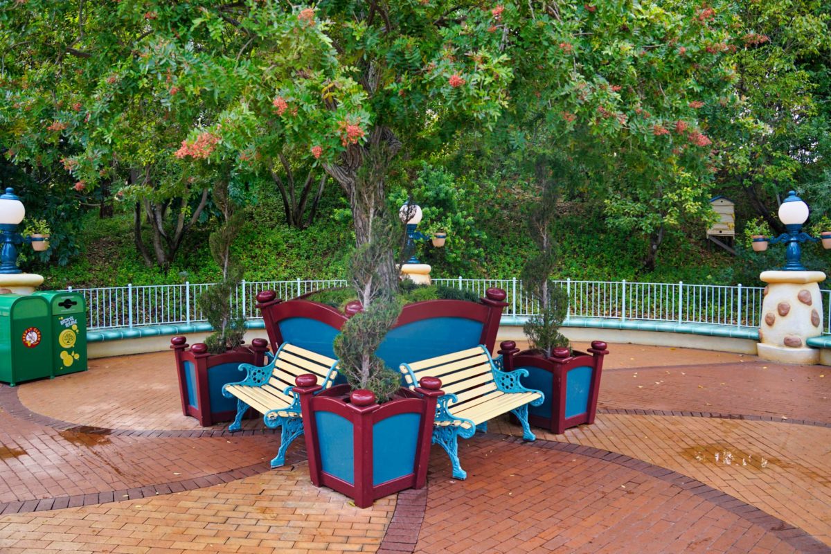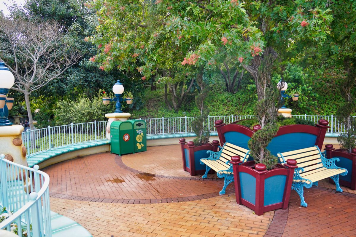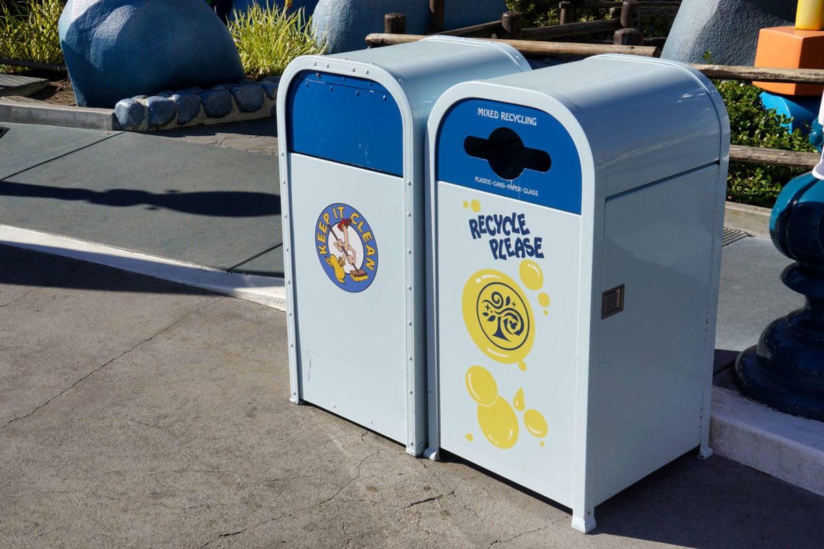 The trash and recycling cans are themed. The trash cans feature one of the brooms from “The Sorcerer’s Apprentice.”