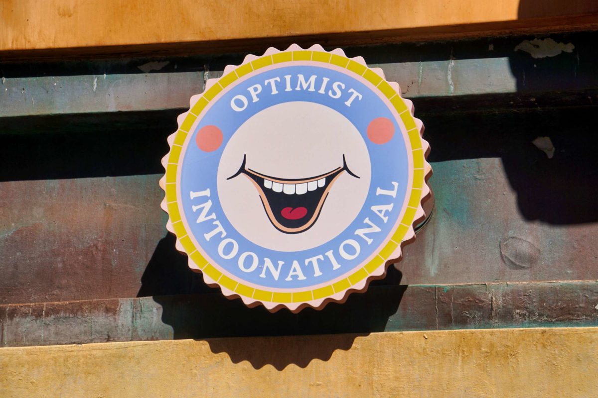The final sign has a smile and reads “Optimist Intoonational.”