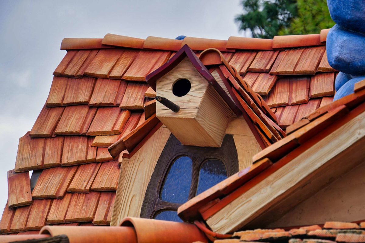 There’s a small birdhouse near the bird’s nest.