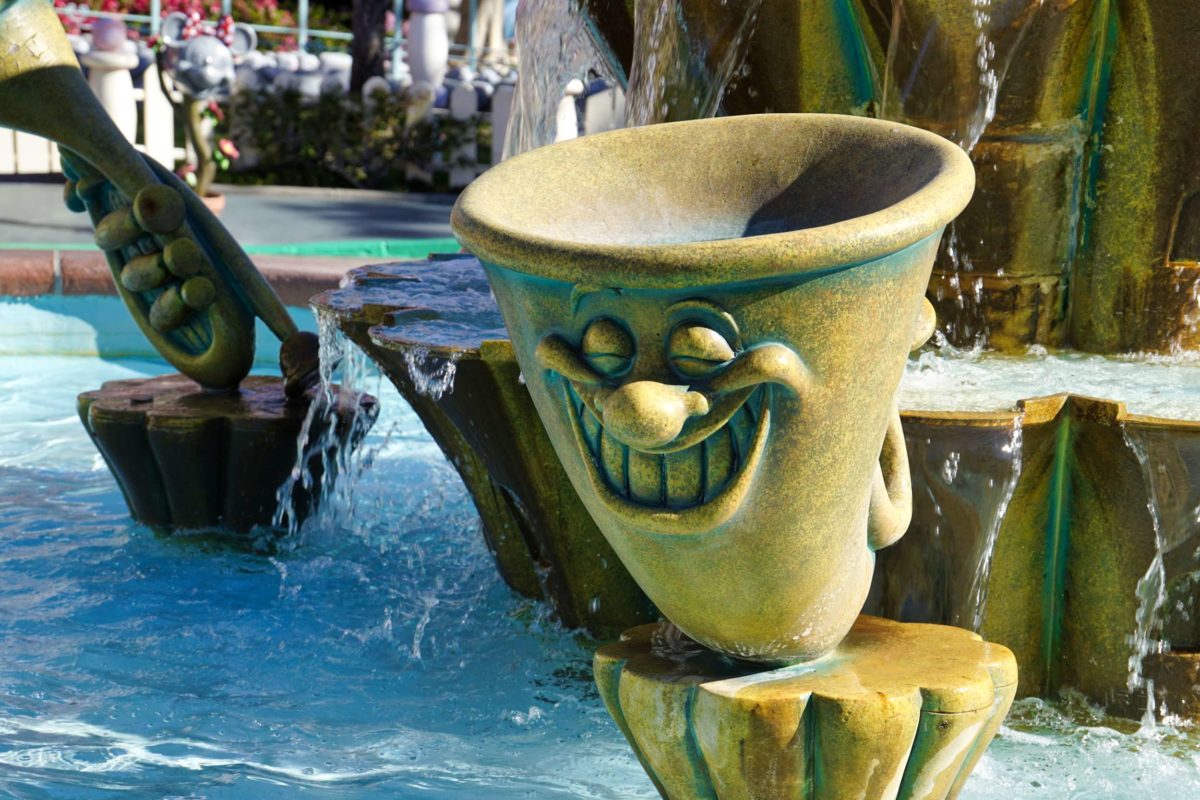 There’s a fountain, with a statue of Mickey as cupid on top.