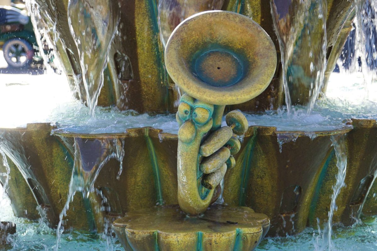 This musical fountain has four different horns around it.