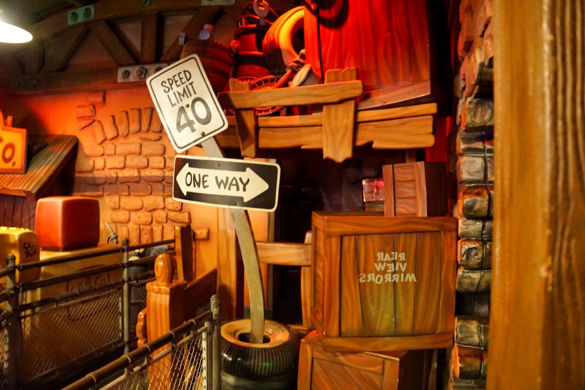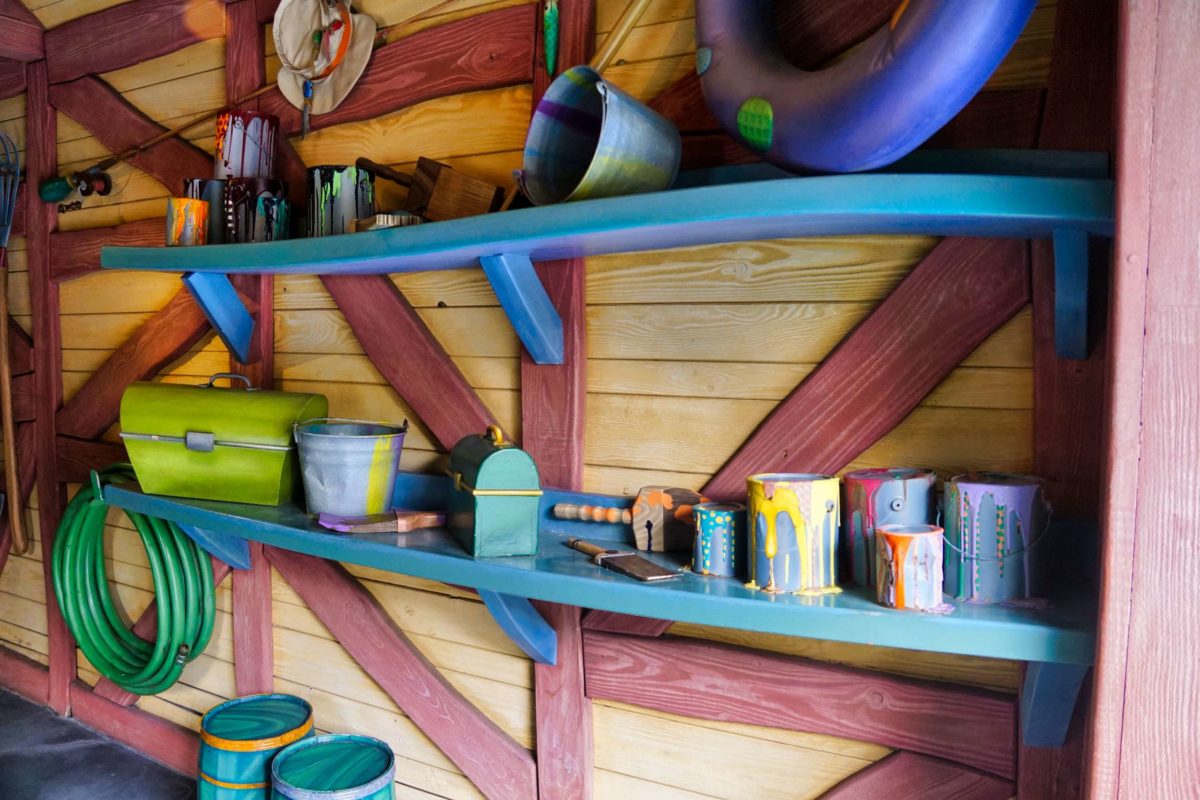 Guests can explore Mickey’s garage, despite the “exit only” sign on the door.