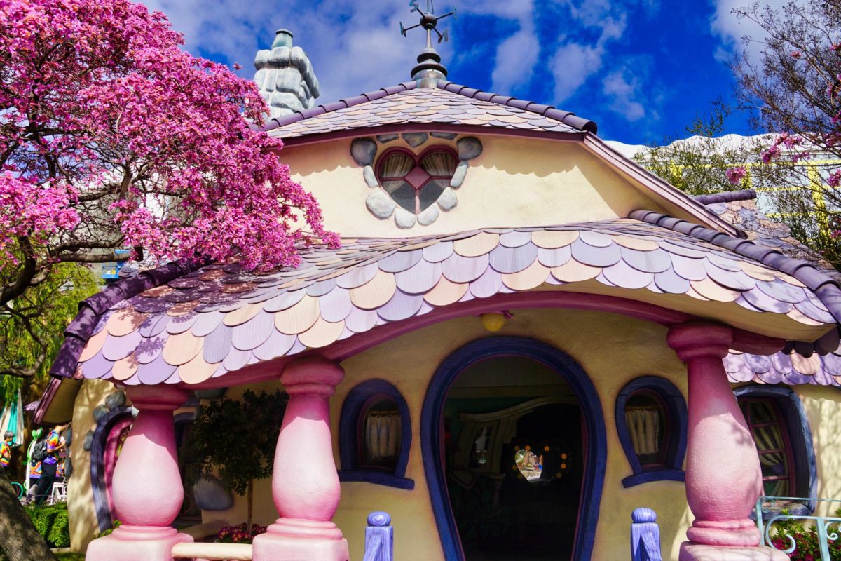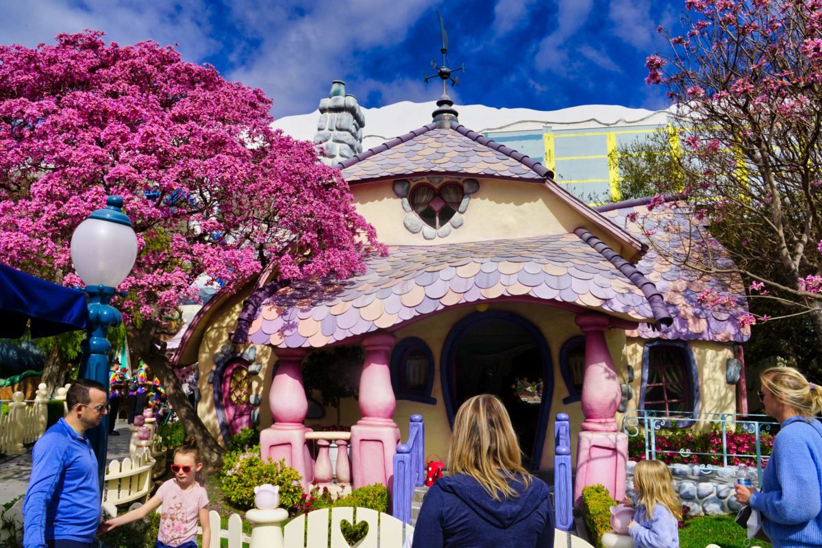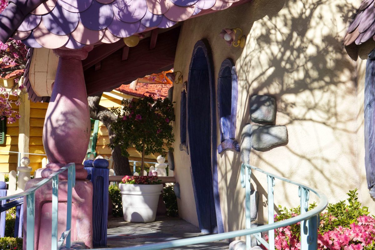Minnie’s house is next door to Mickey’s. The hills behind her house aren’t as pretty as the ones behind Mickey’s.