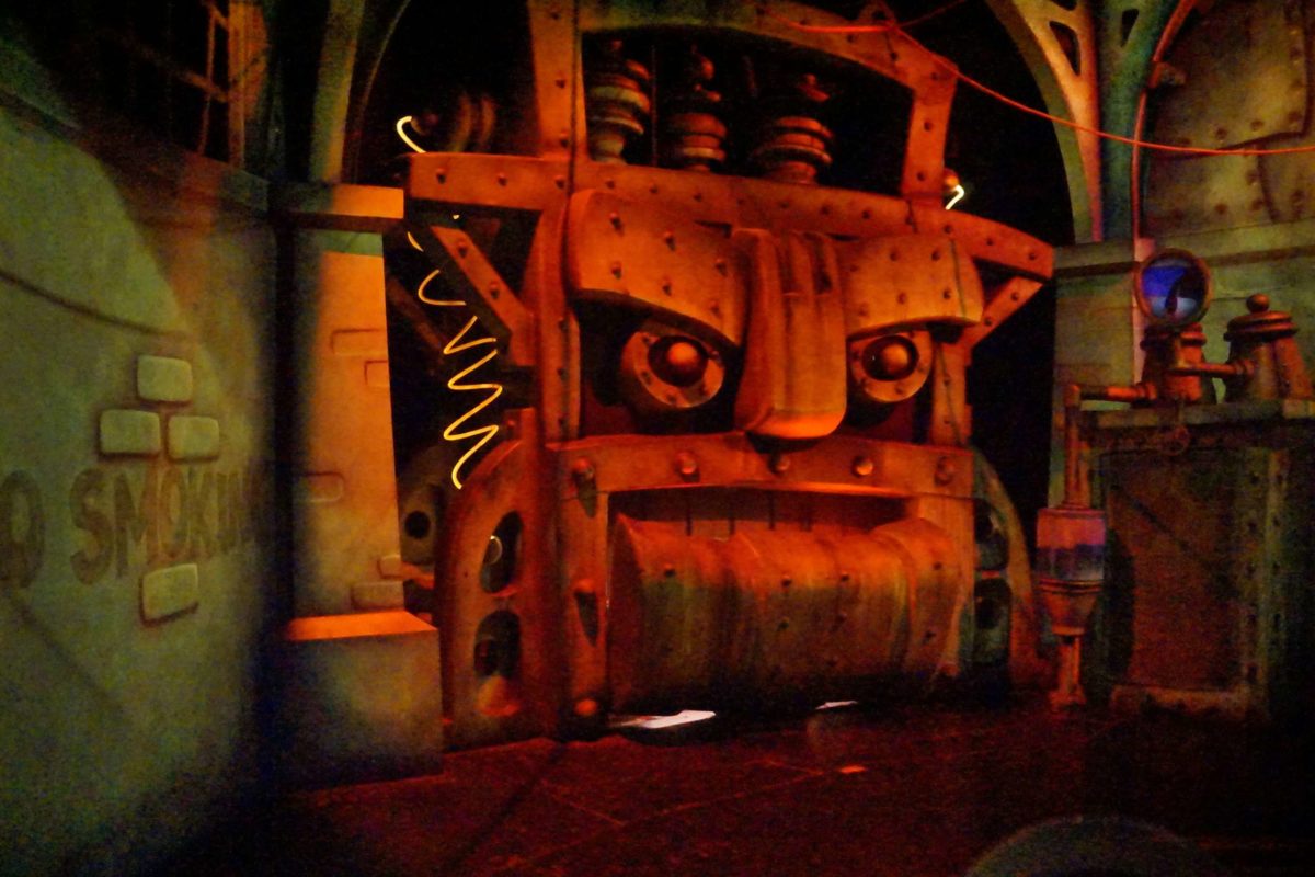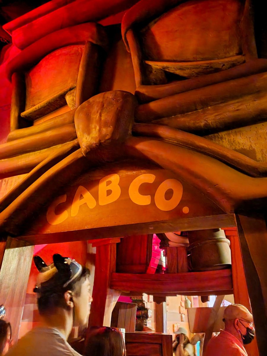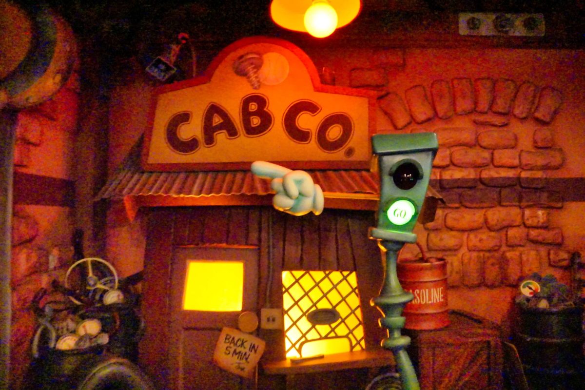 Benny the Cab looms over the entrance, moving up and down.