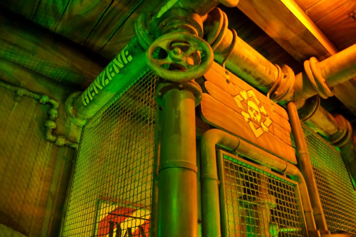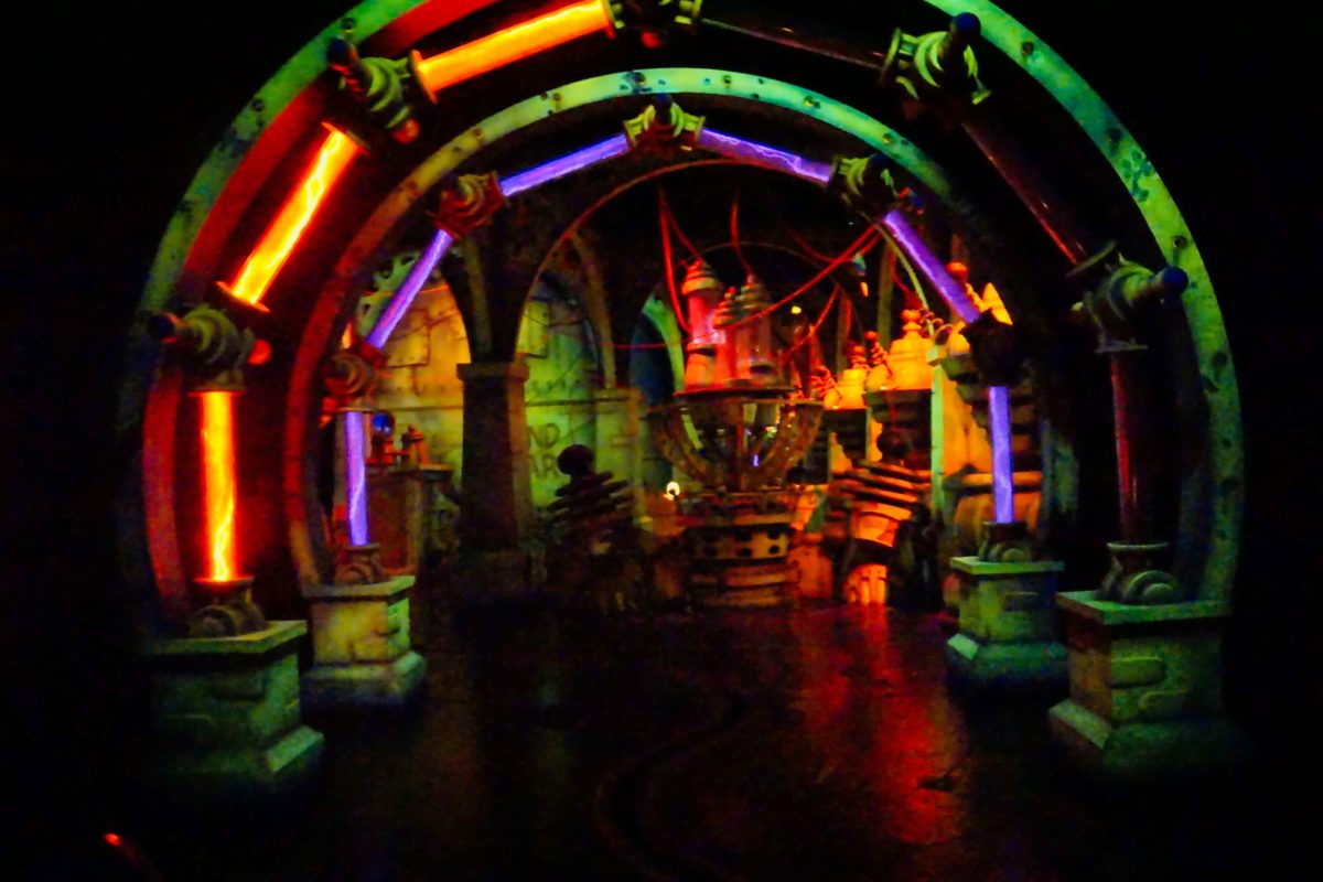 The entire coaster can be seen from the ground, which means you can admire some of the fun props before boarding.