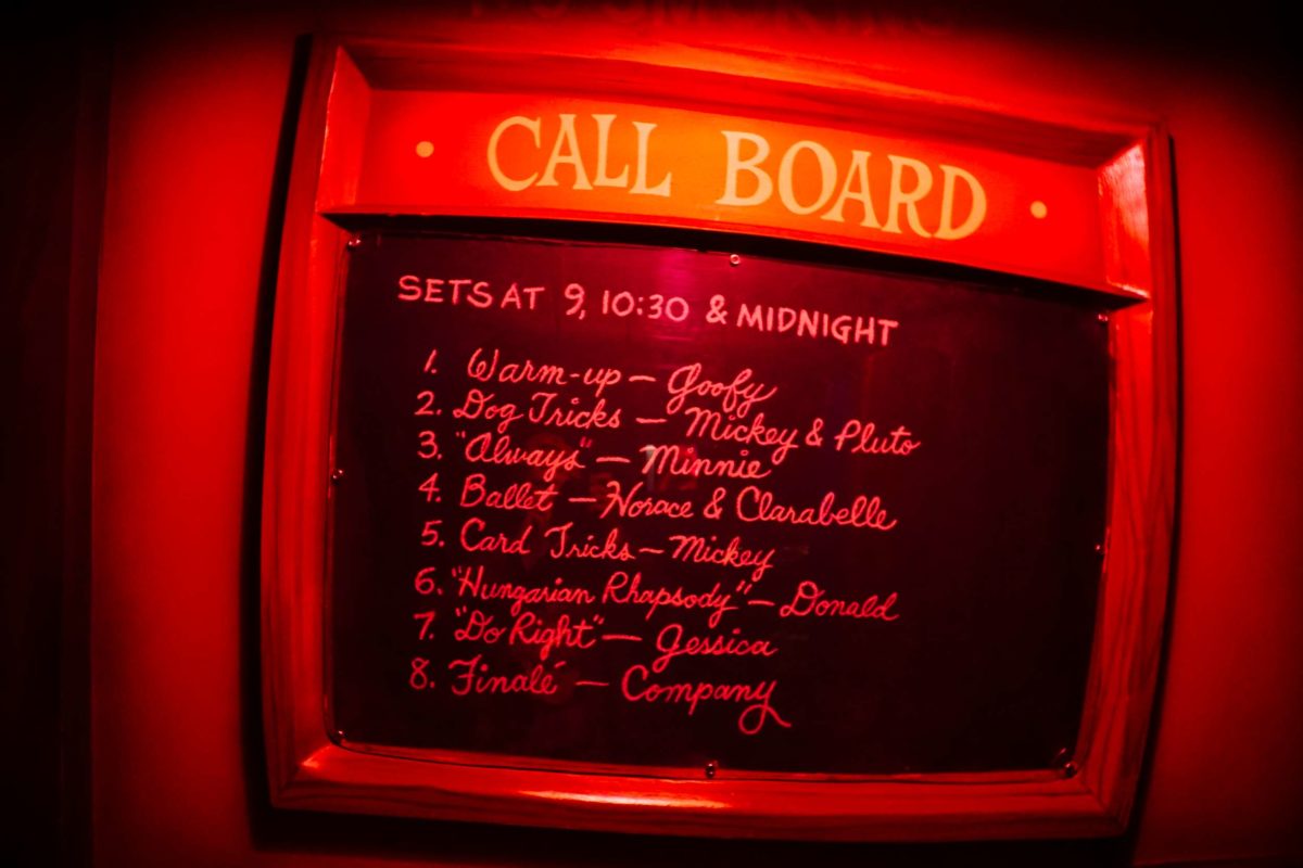 Guests enter a backstage area, where they see a call board for different animated characters.