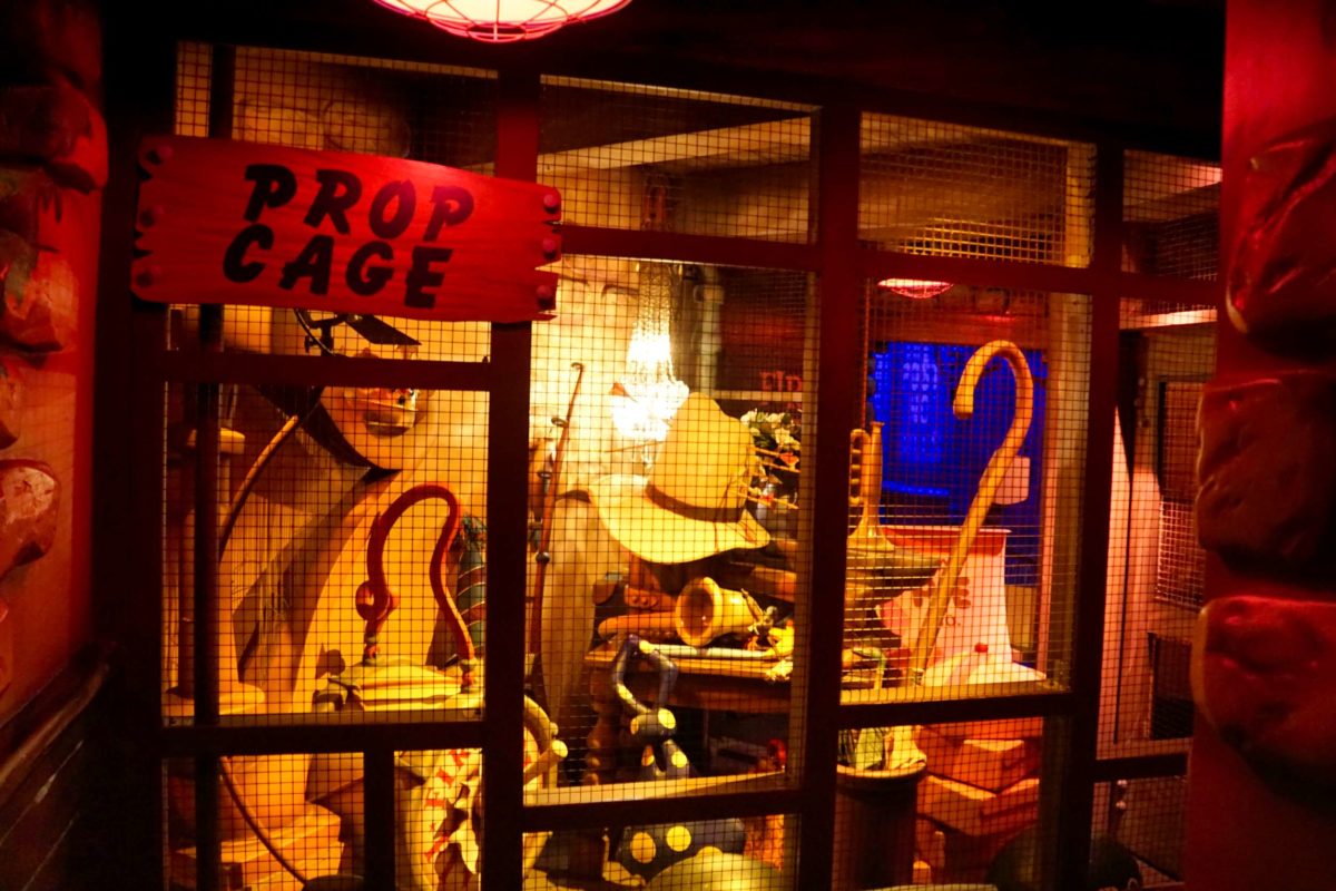 Nearby is a prop cage full of props you might see in classic cartoons.