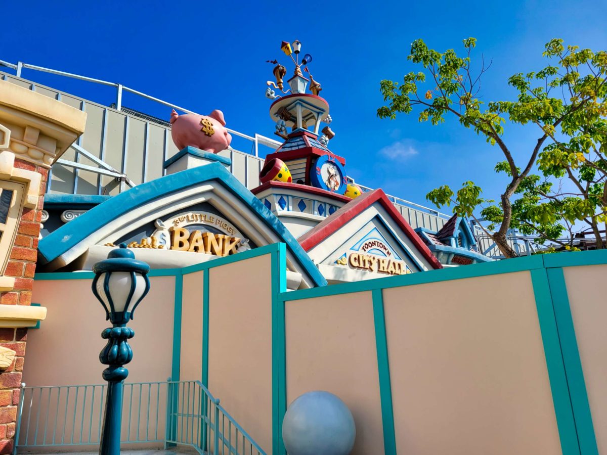 The 3rd Little Piggy Bank and Toontown City Hall are already behind construction walls, but can still be seen.