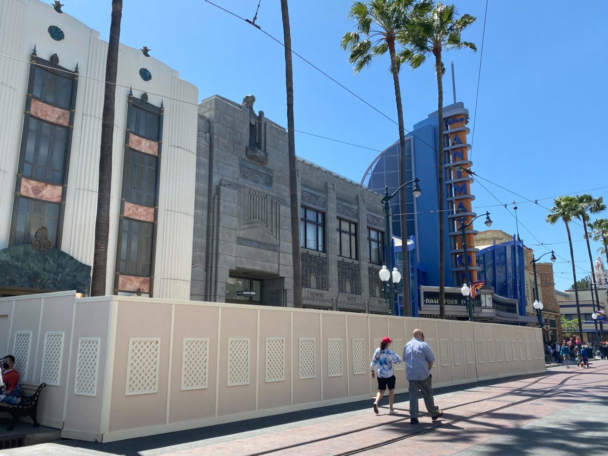 Construction walls went up on one side of Hollywood Boulevard in Disney California Adventure earlier this year. The walls have now been moved across the street and around the corner.