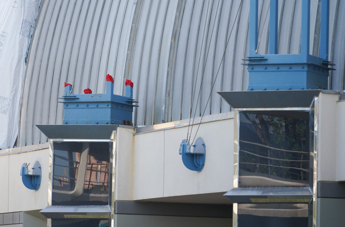 The four edges of the removed tower seem to be covered with red tape or plastic.