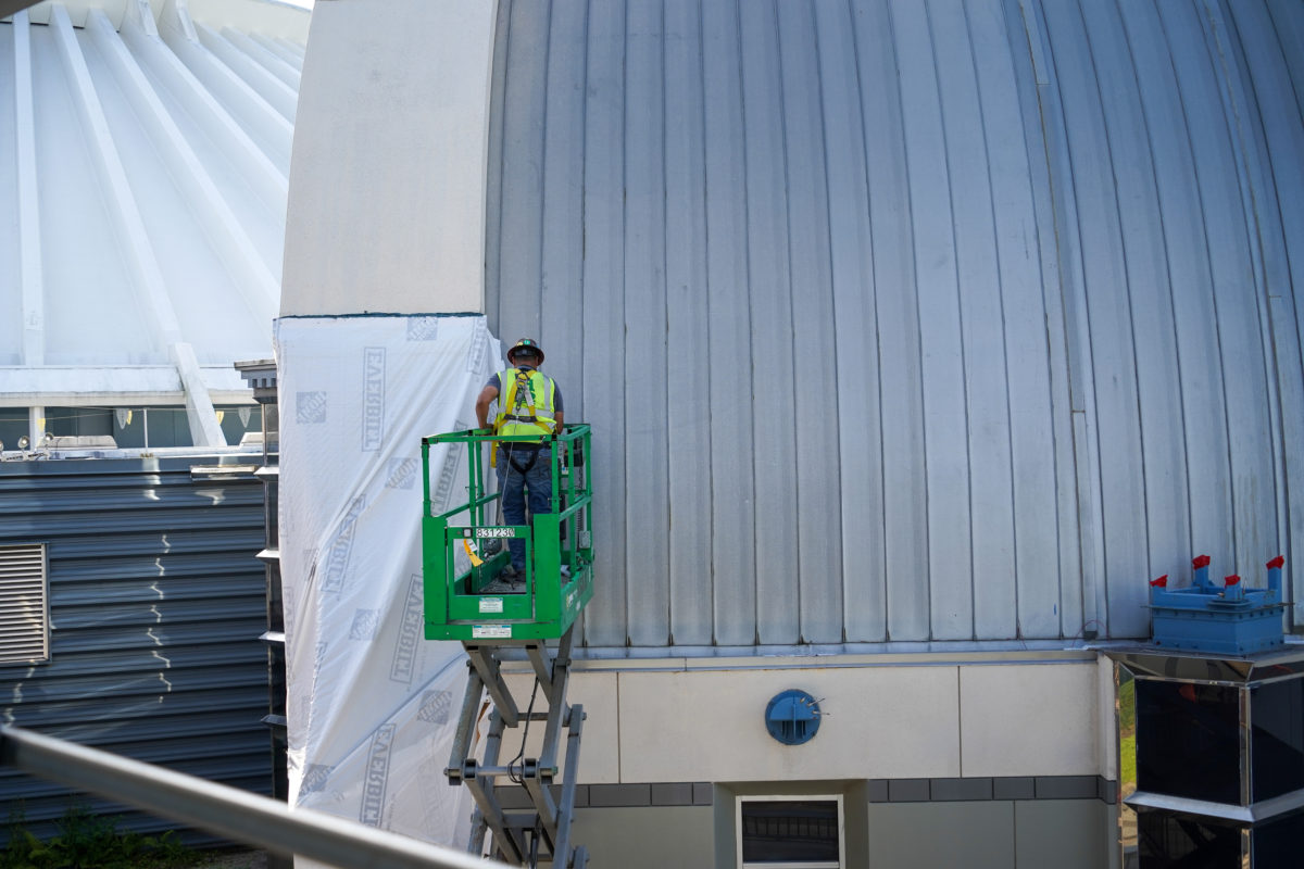 The wires attaching the tower to the building have also been removed.