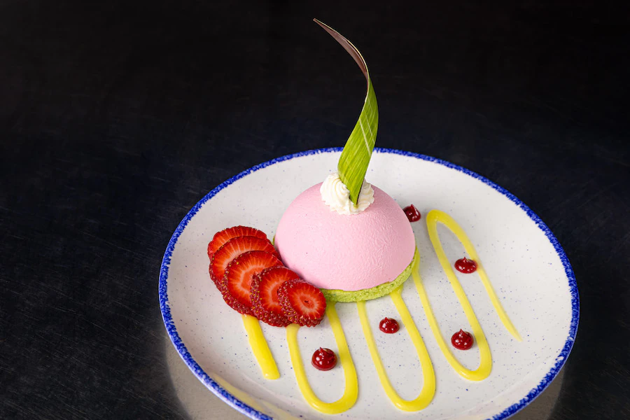 • Mother’s Day Dessert: Strawberry-pistachio dome with strawberry-lemon gel and ruby chocolate powder (New)