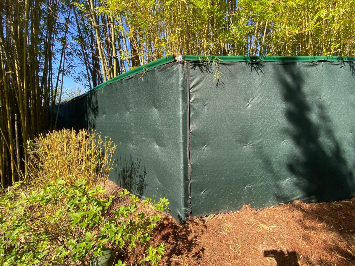 A peek over the fence reveals that most of the area has been cleared, with railings protecting cast members from the work site.