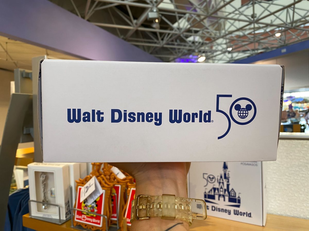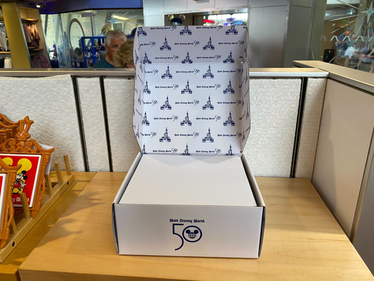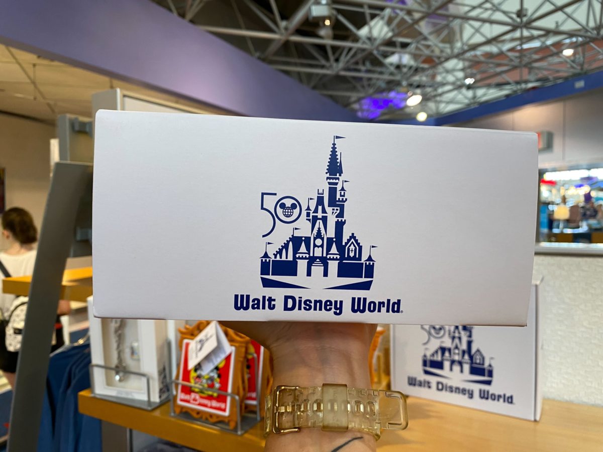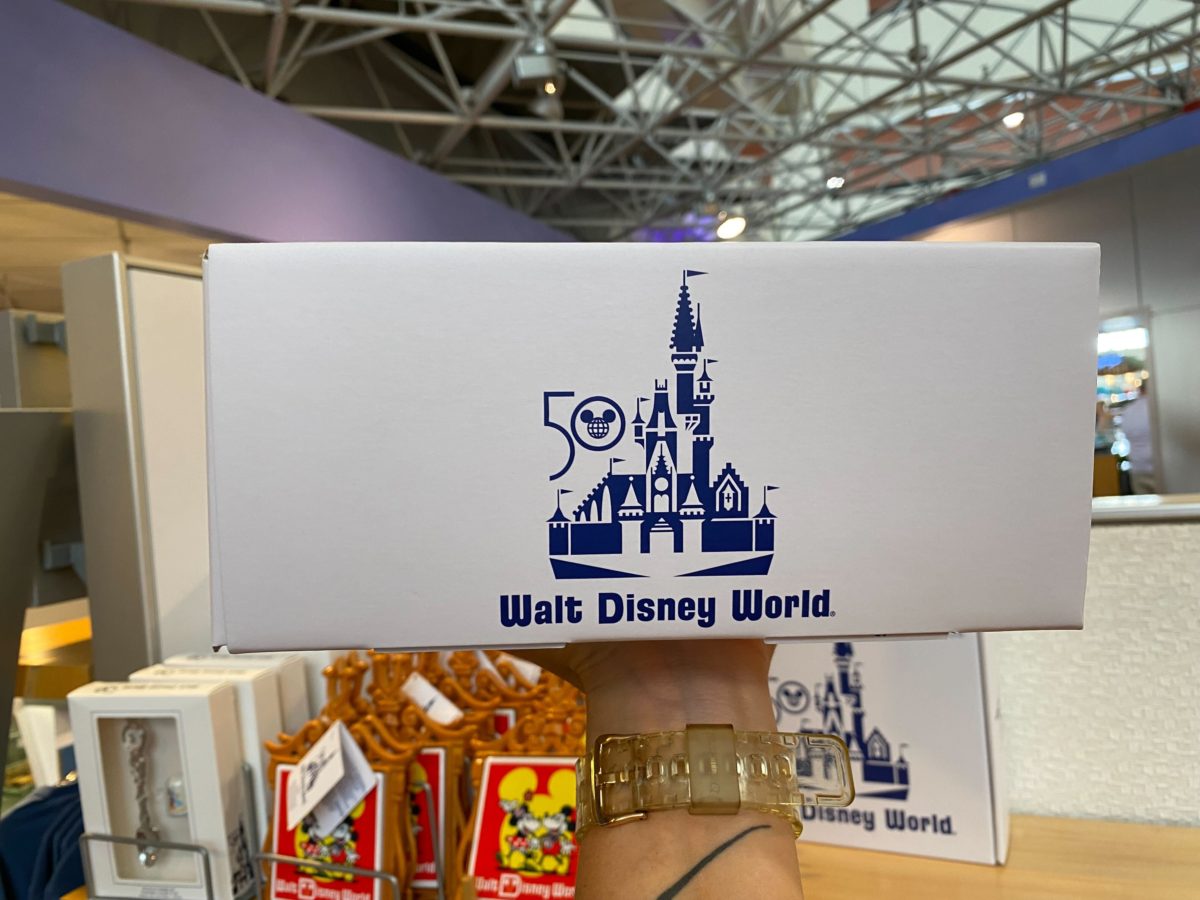 The box — decorated with the Vault Collection Cinderella Castle logo — is labeled as coasters, but they seem more like trays to us.
