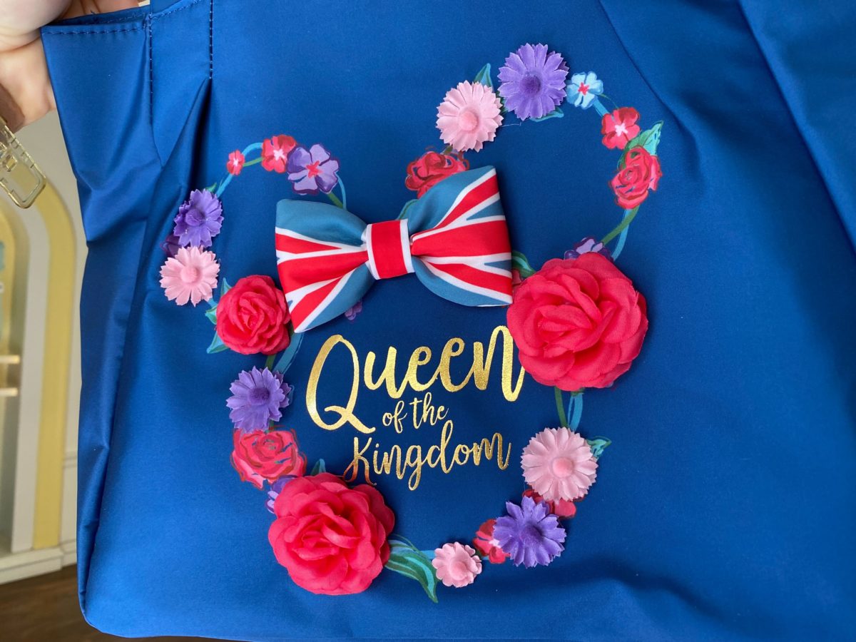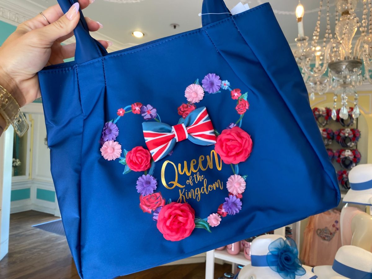 This blue tote says “Queen of the kingdom” in gold script on one side.