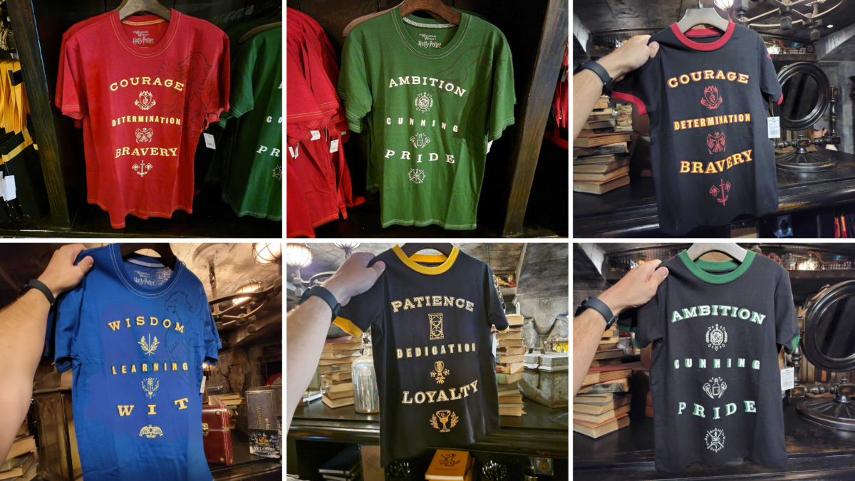 New adult and youth Hogwarts house shirts have arrived at The Wizarding World of Harry Potter in Universal Studios Hollywood. We found all of these in Filch’s Emporium of Confiscated Goods, at the exit of Harry Potter and the Forbidden Journey.