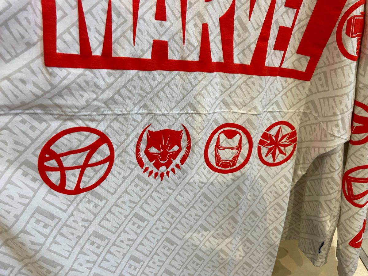 Avengers assemble! Calling all Marvel fans – a new Marvel-themed Spirit Jersey has just arrived at Disneyland. We found it at World of Disney in Downtown Disney District.