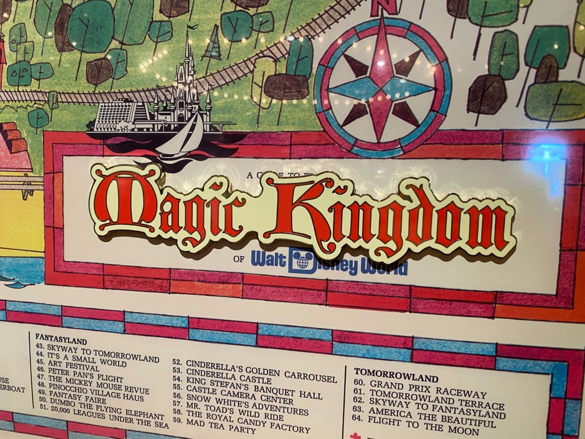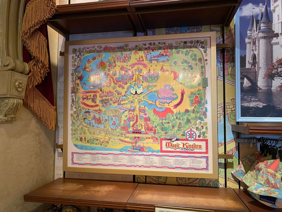 Walt Disney World has released a special version of the retro Magic Kingdom map that has been available as a folded map and featured on Vault Collection items. This new version is framed and includes seven pins of Magic Kingdom icons.