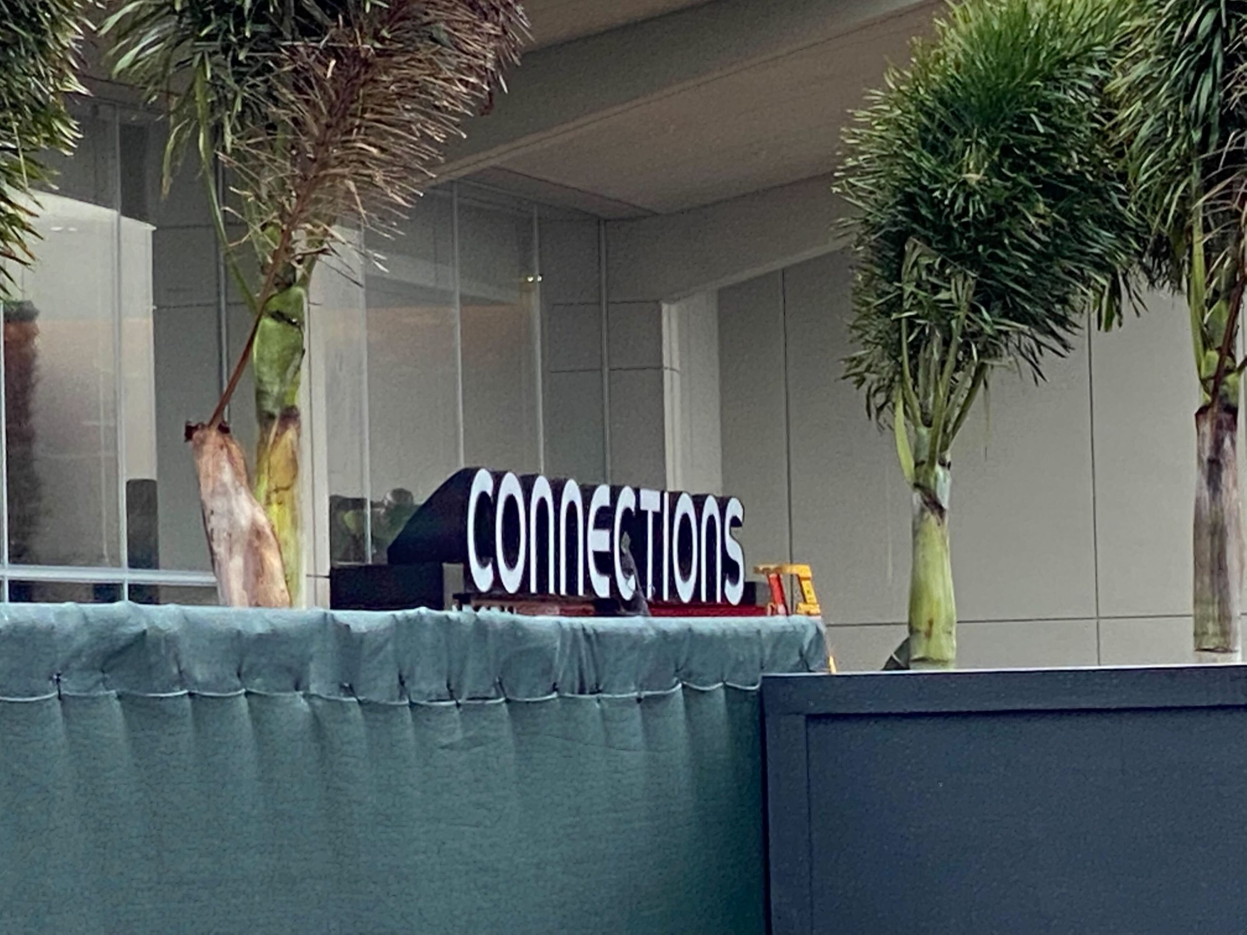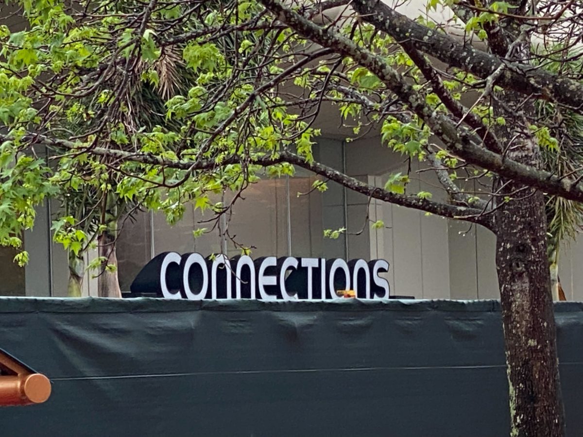 We could only clearly see “Connections” above the archway but either “Café” or “Eatery” would be below it.