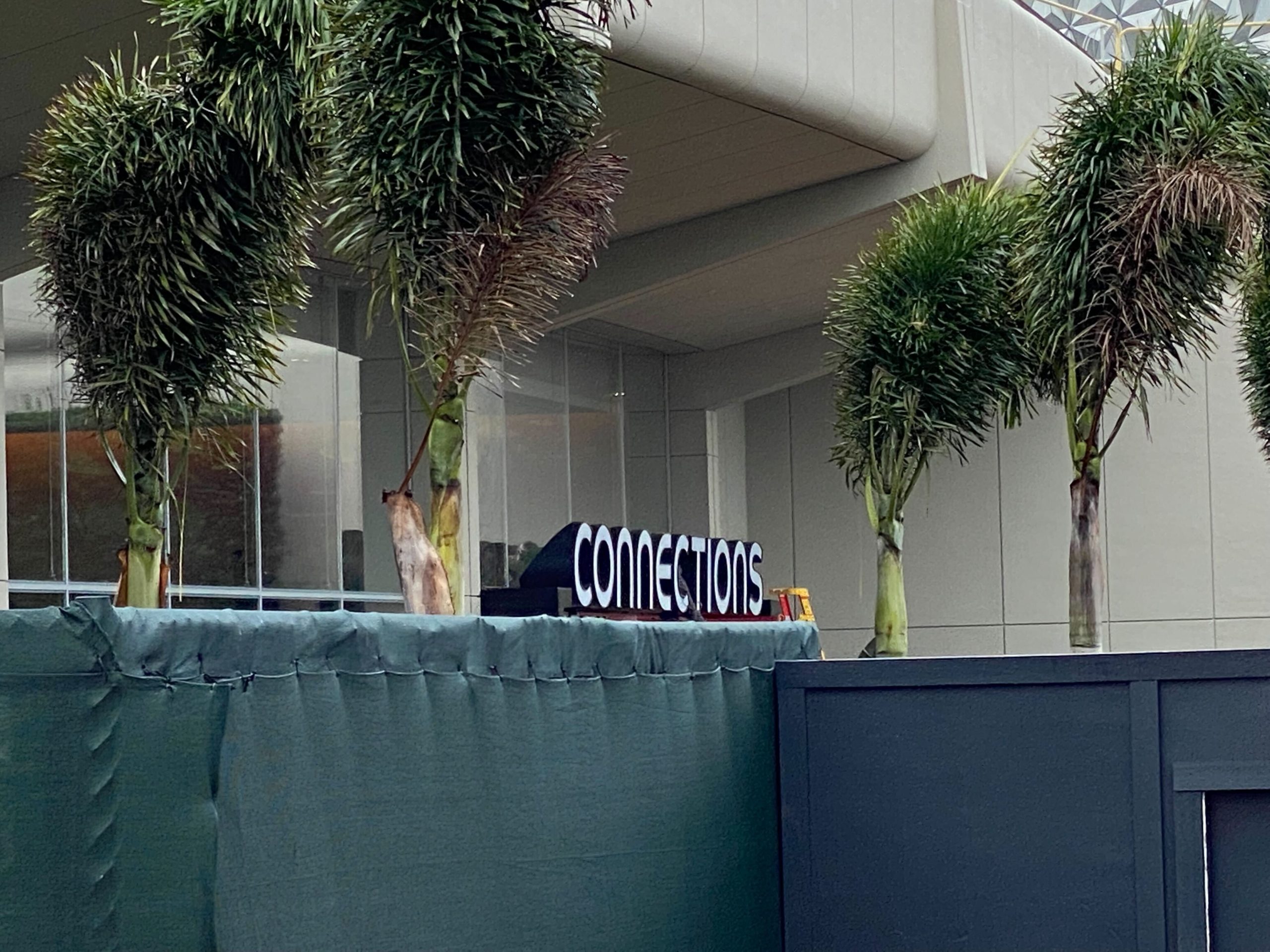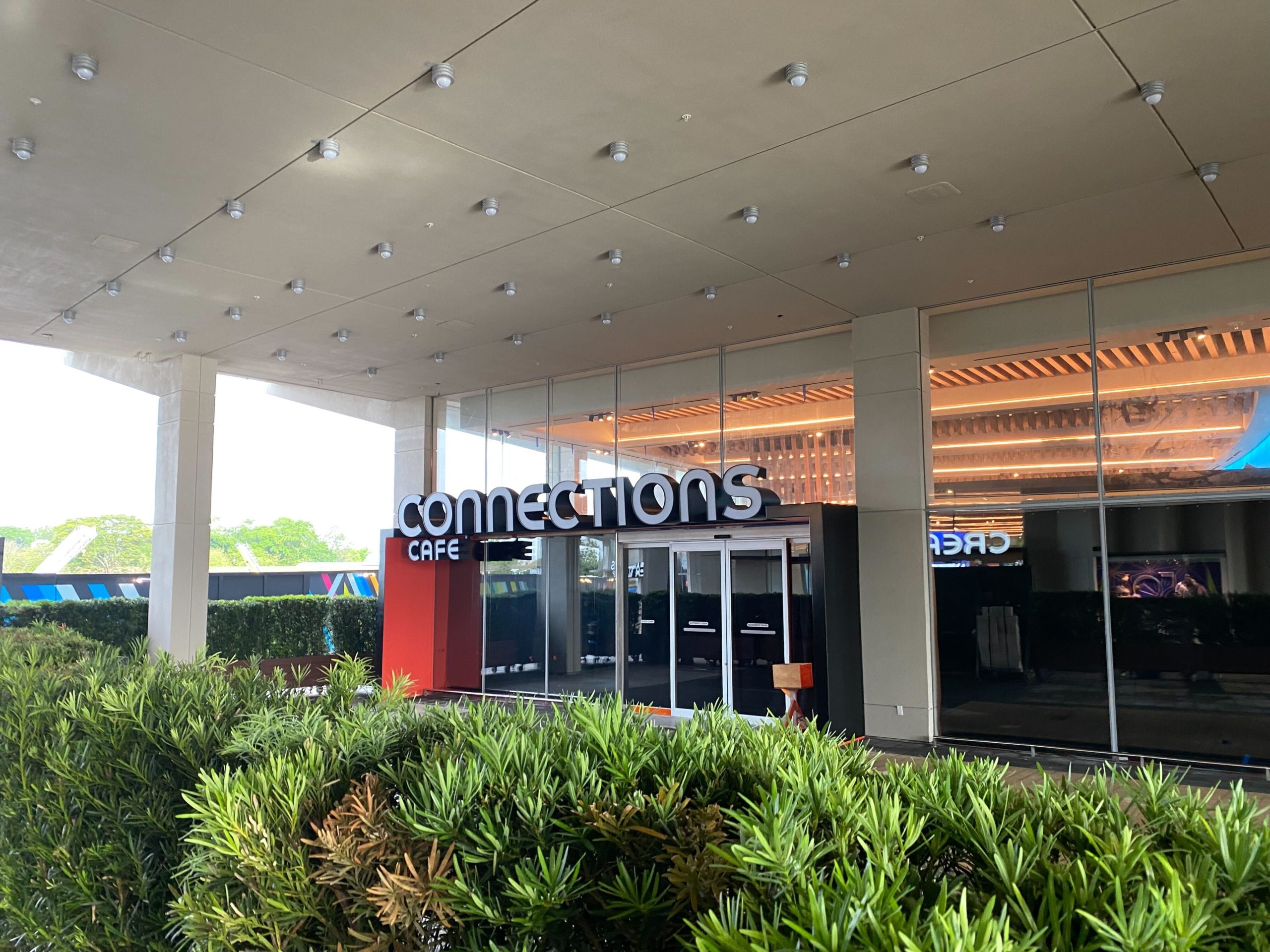 Plants and Another Sign Installed Outside Connections Café and Eatery at EPCOT