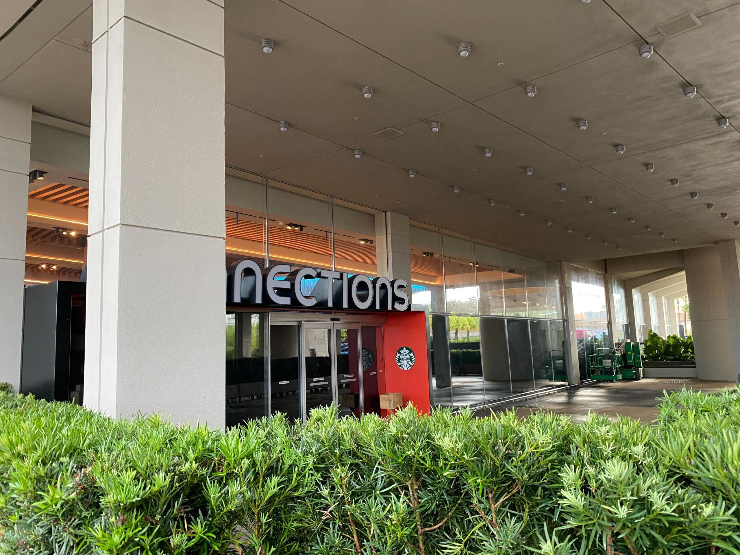 Plants now surround one entrance to Connections Café and Eatery, the upcoming quick-service restaurant at EPCOT.