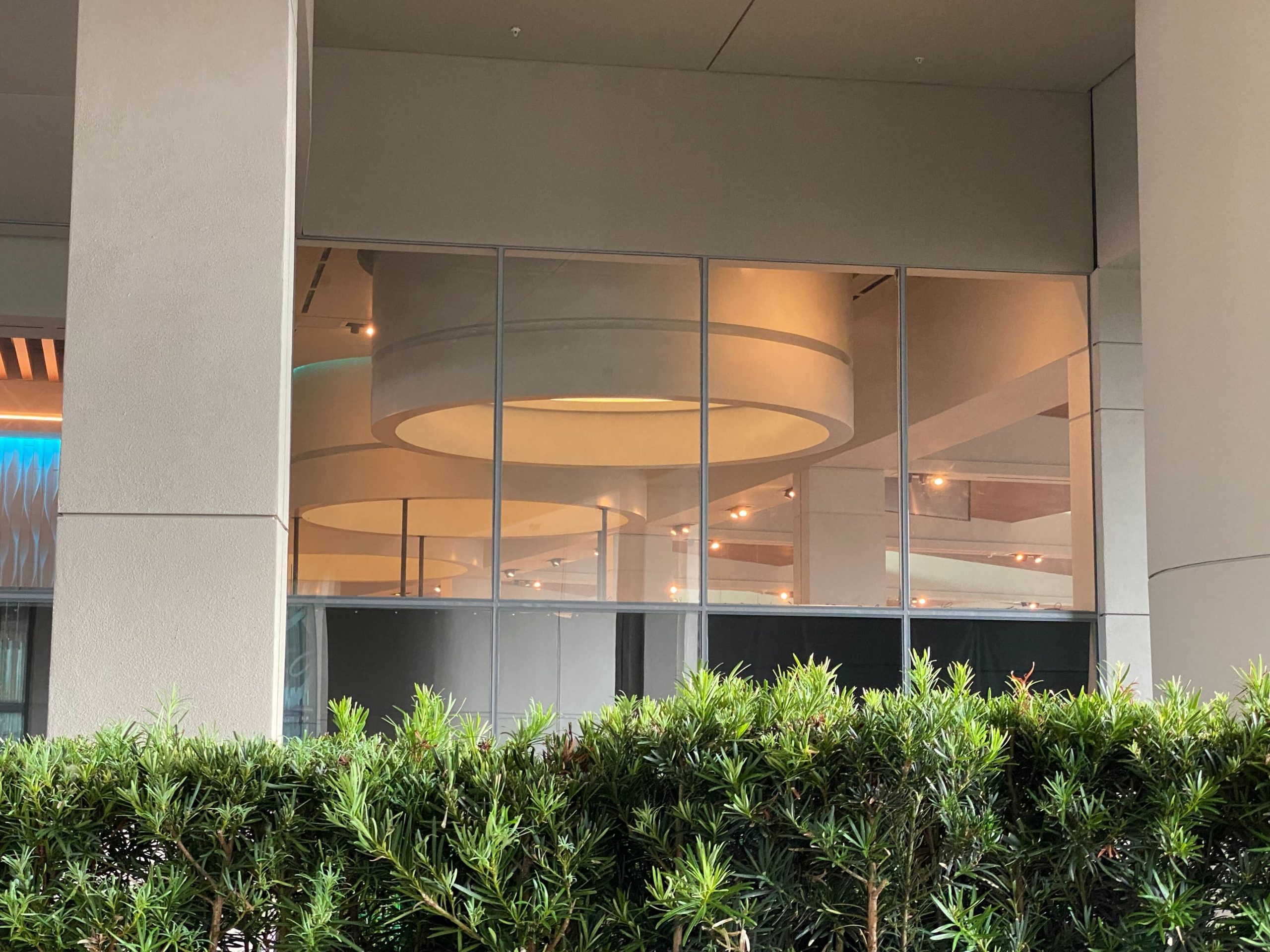 In the nearby breezeway, construction walls have been almost entirely replaced with rolling planters.