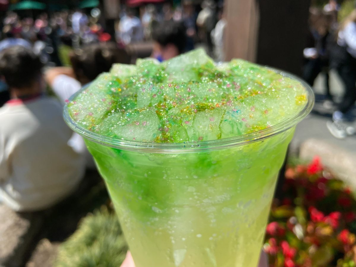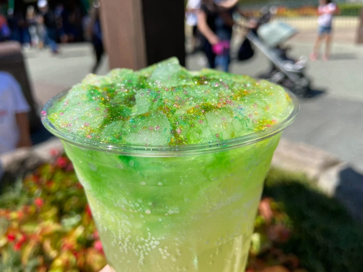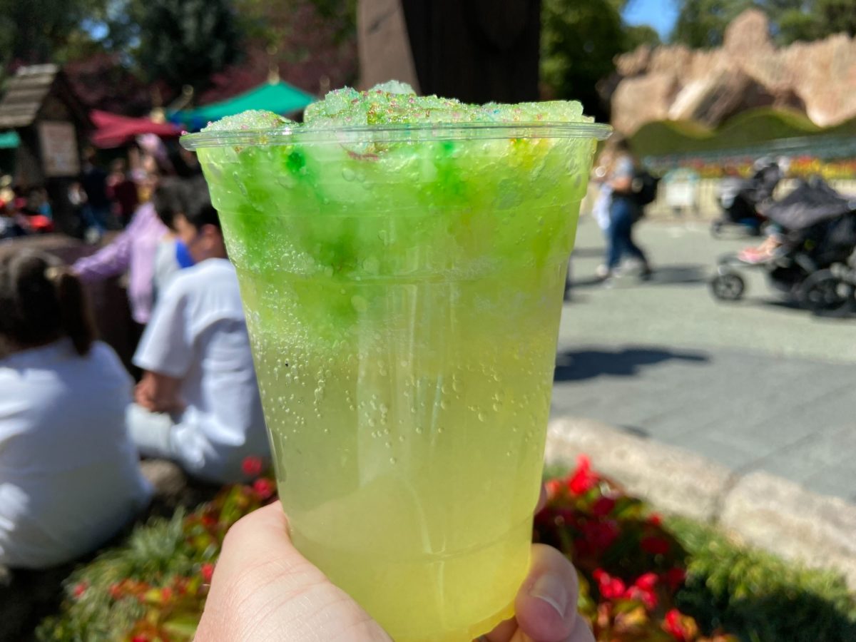 Not the most fantastic drink we’ve ever had, but it’s a fun, festive option, especially if you like sweeter drinks or pineapple. It’s probably even more fun to watch the parade with your glowing cup at night!