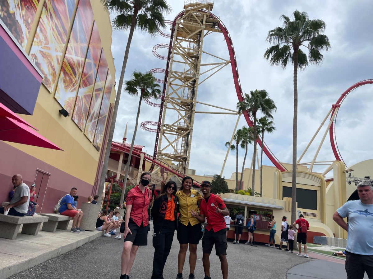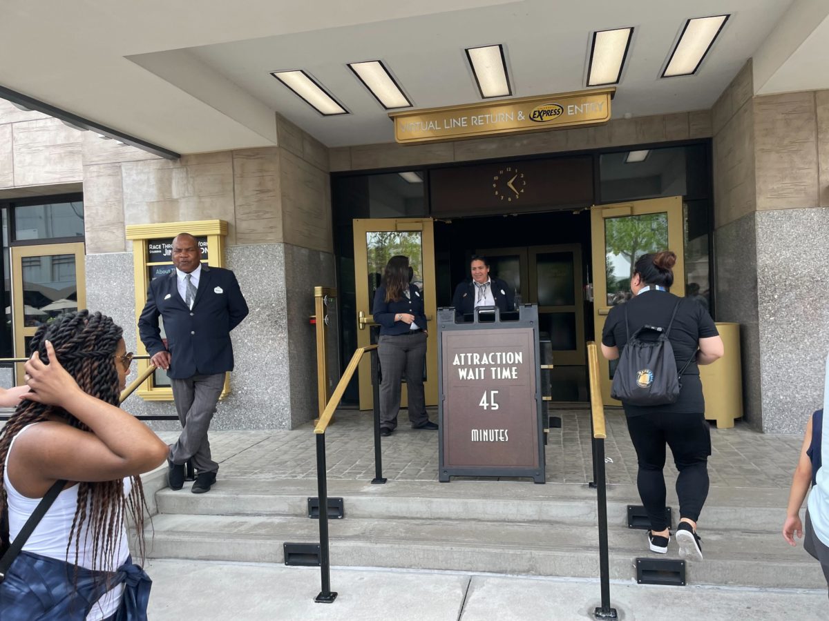 Over at Universal Studios Florida, Hollywood Rip Ride Rockit was experiencing an extended delay. Team Members at the entrance were amicable and informed guests about the delay.