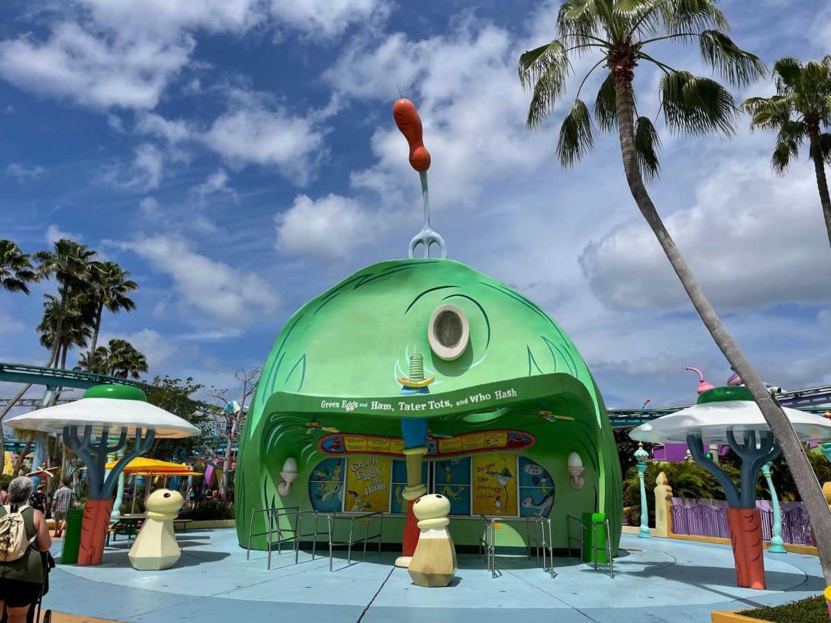 Despite the crowds, Moose Juice, Goose Juice, and Green Eggs and Ham were both closed. We heard some issues need to be taken care of in these locations, and hopefully, they will reopen soon. Circus McGurkus Cafe Stoo-pendous is open, and the food carts around the land, but it’s a bummer we won’t be having any tots today.