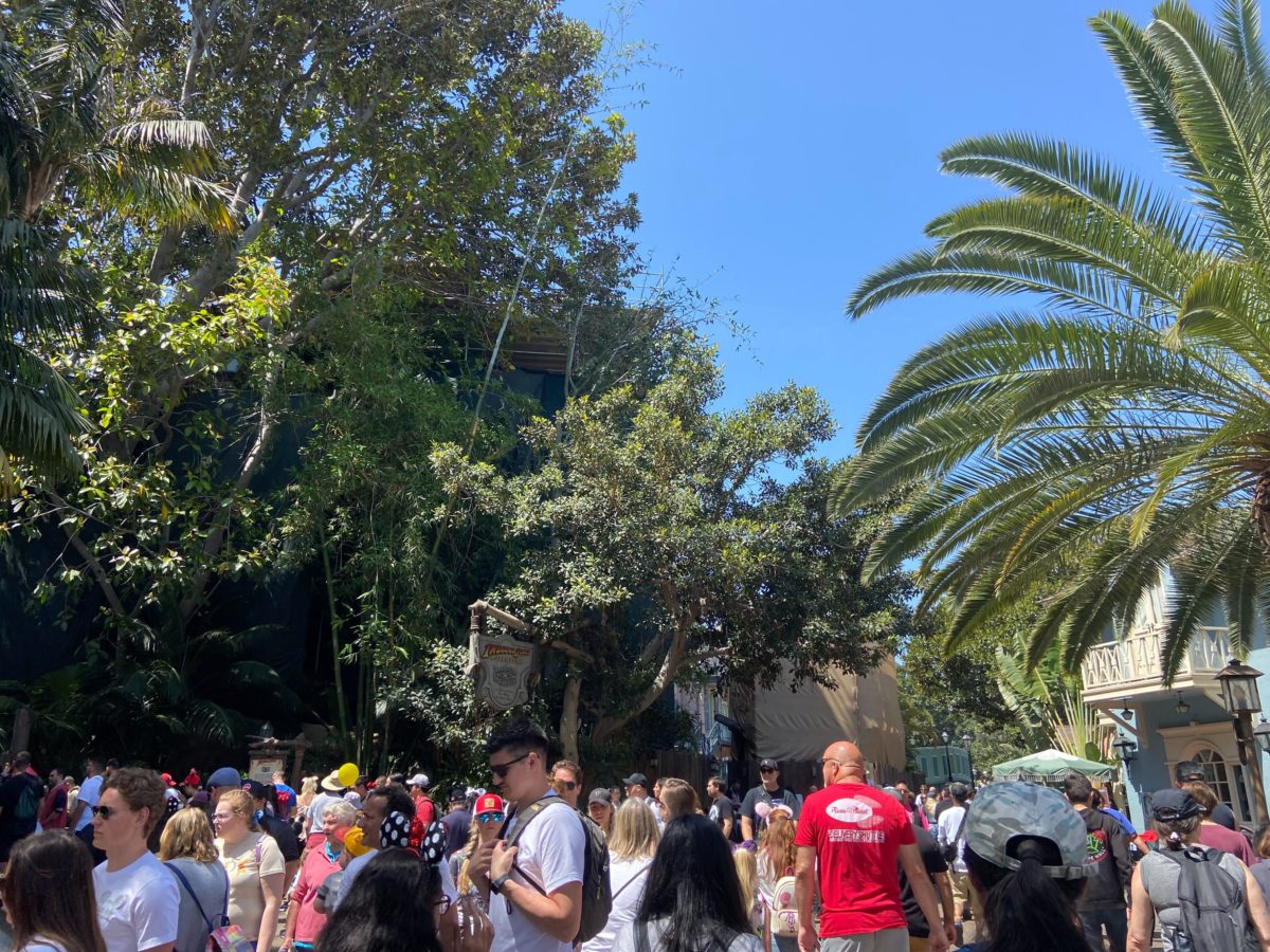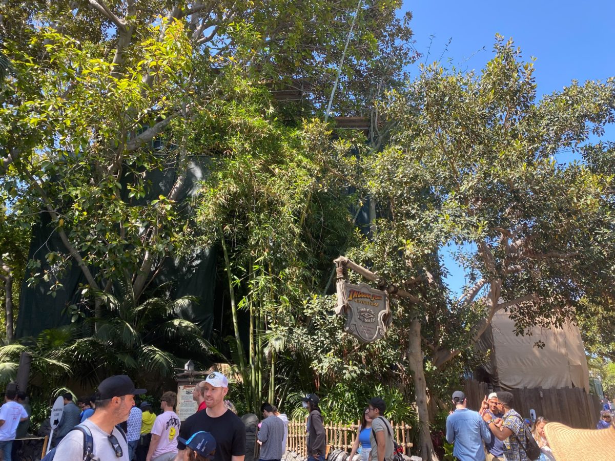 Meanwhile, the foliage of the Indiana Jones Adventure entrance shrouds the main structure from the walkway.