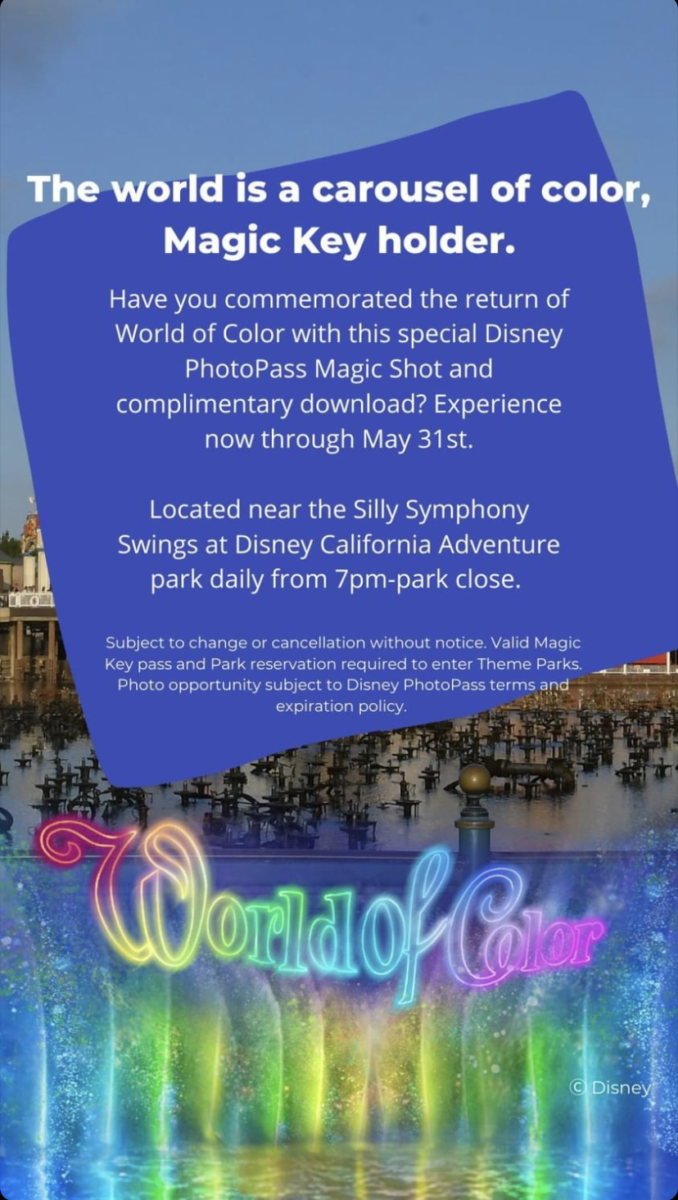 Disneyland Resort Magic Key holders can take advantage of a special World of Color PhotoPass Magic Shot and complimentary download now through May 31.
