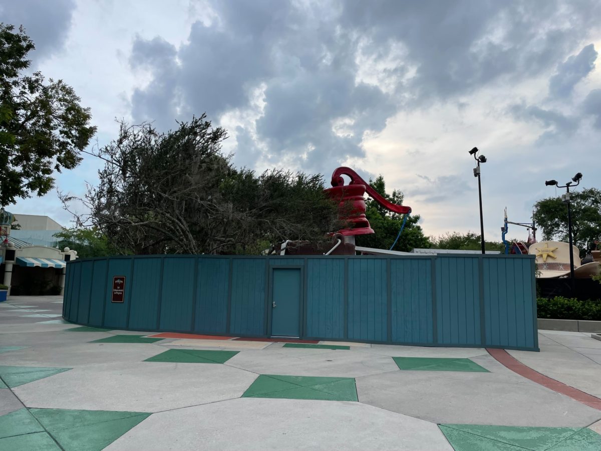 Crews have finally erected construction walls and scrim around Fievel’s Playland in Universal Studios Florida. The playground closed for maintenance last month, apparently due to issues with the water slide.