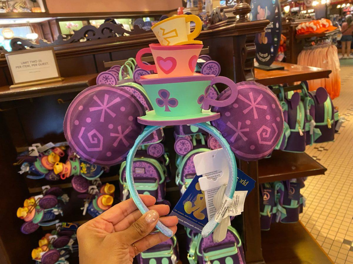 The Mad Tea Party logo can be seen on the light blue headband.