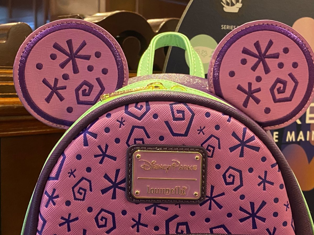 We found the backpack and ear headband at the Emporium and the pin at 20th Century Music Company, both in Disneyland.