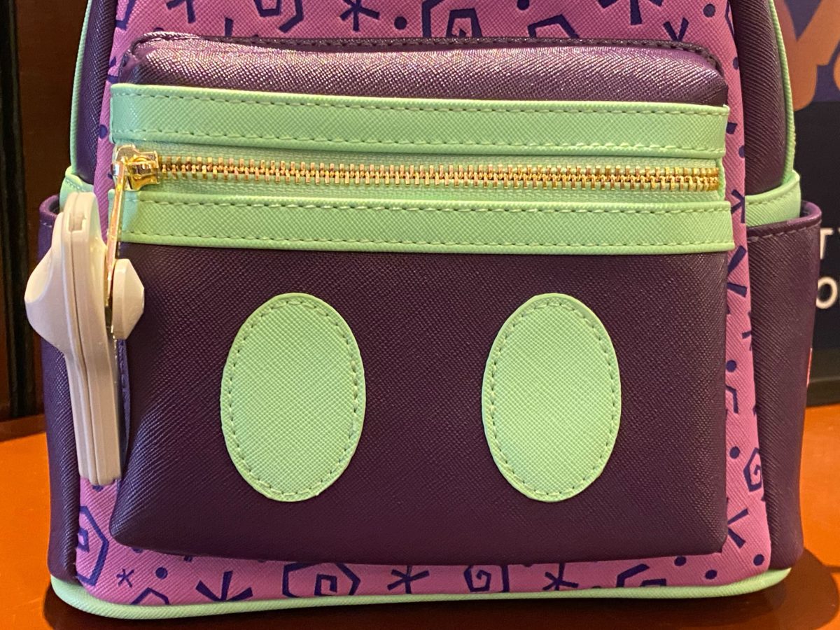The front pocket is inspired by Mickey Mouse’s pants, rendered in dark purple and light green.