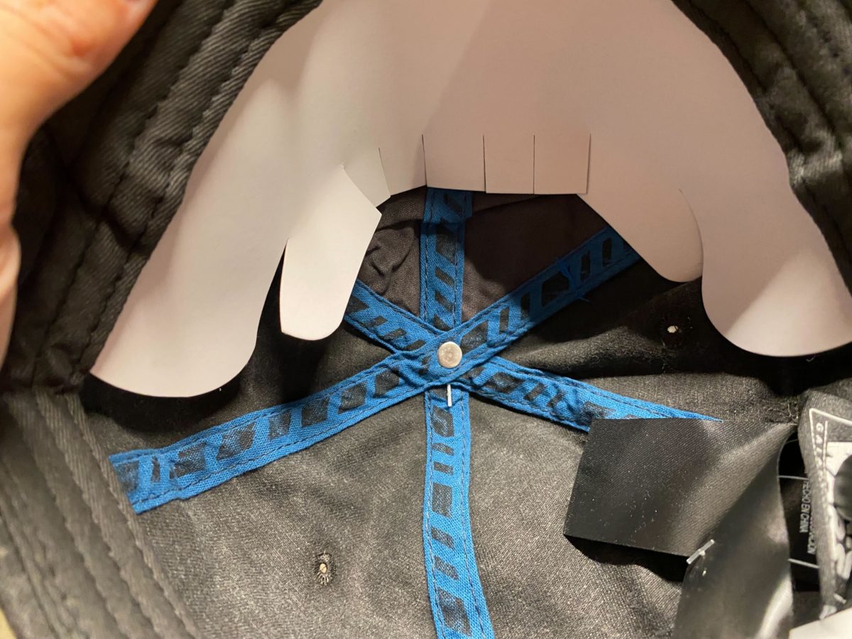 Two droid arms are crossed on the brim.