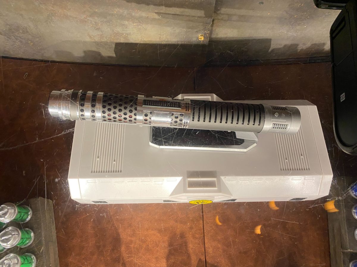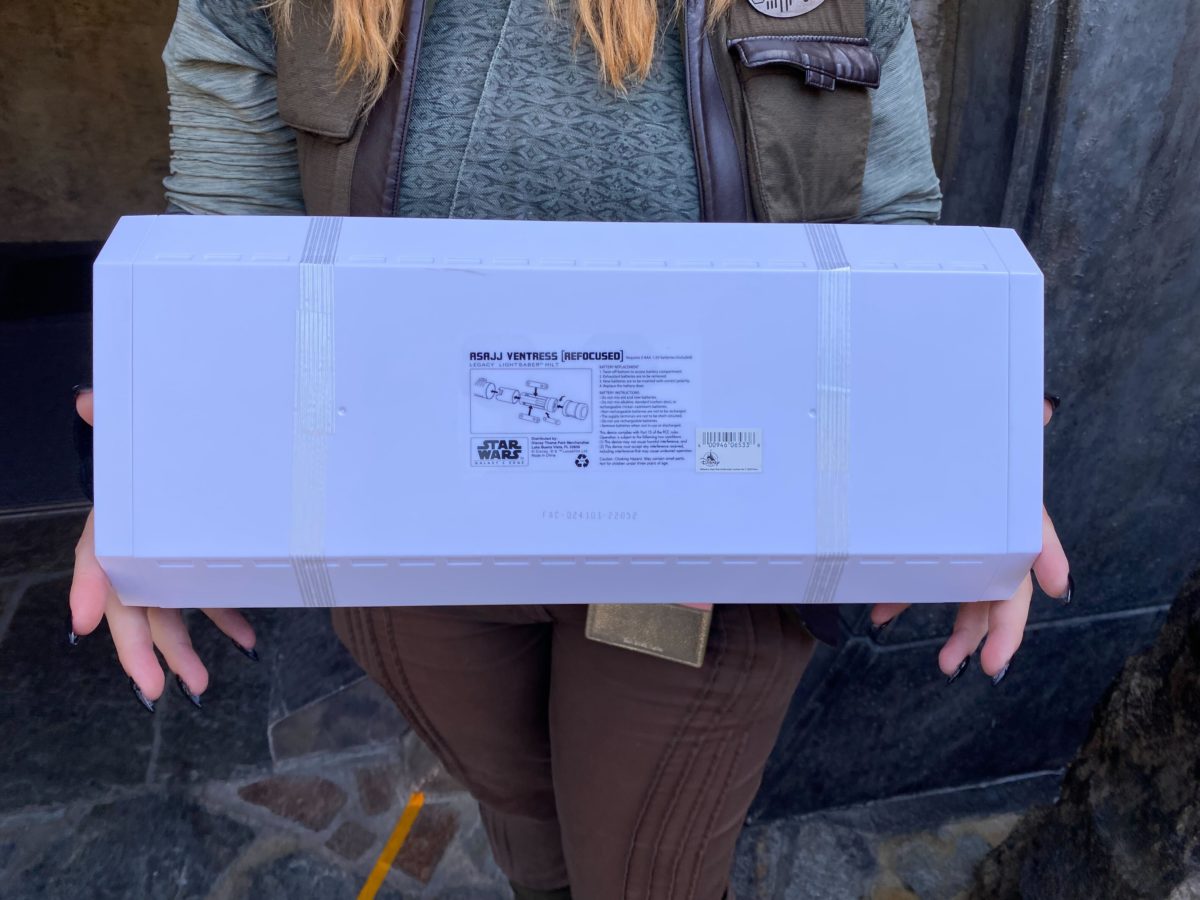 As opposed to the original Asajj Ventress lightsaber that debuted when Galaxy’s Edge opened, this hilt is a replica of the saber Ventress forges for herself after being cast out of the Separatist army.