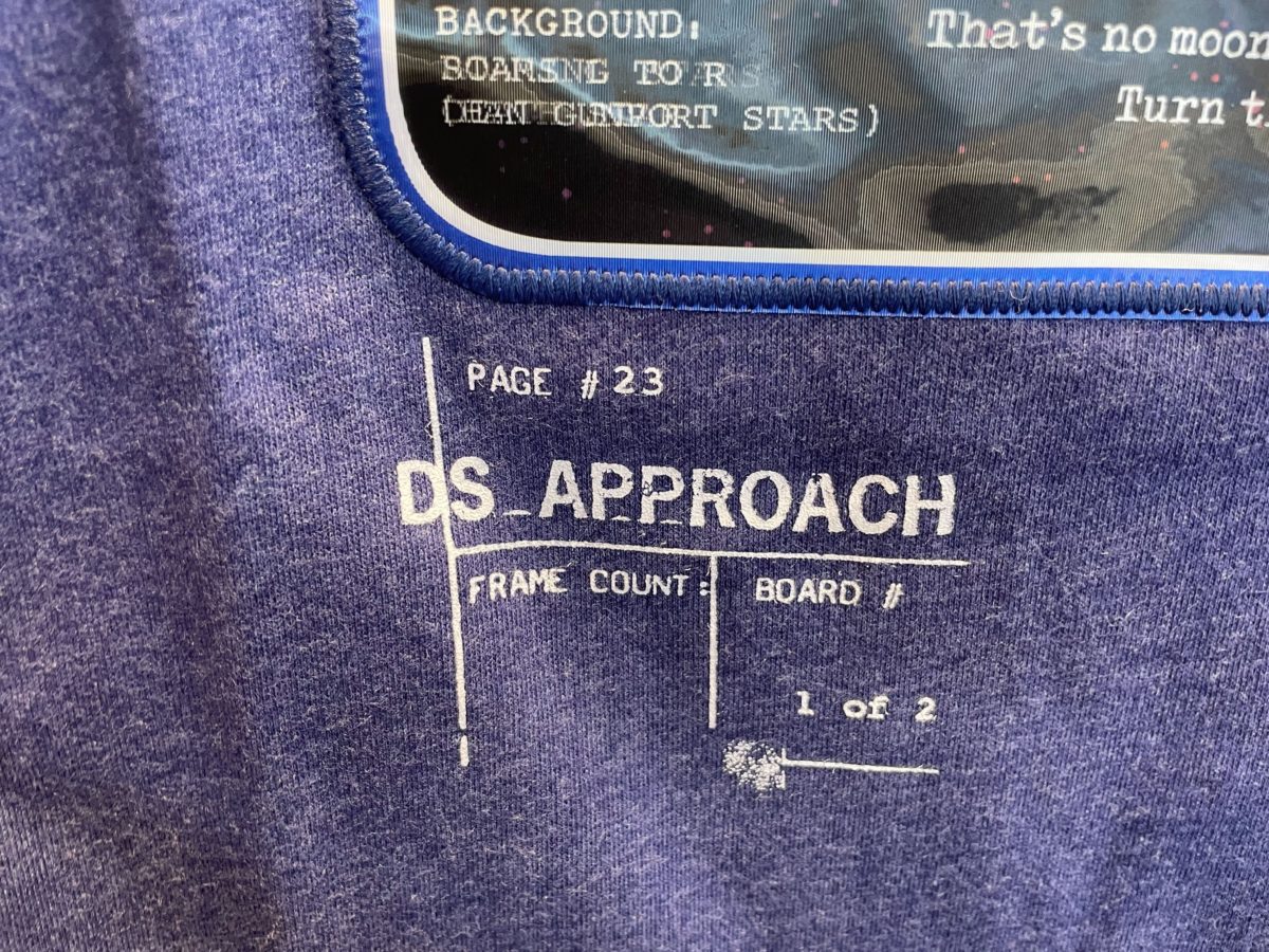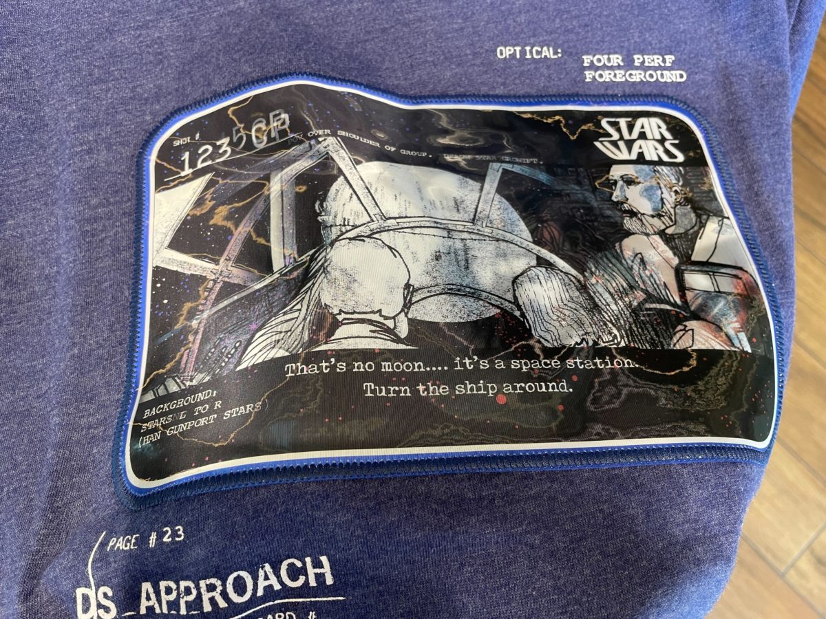 This shirt features several storyboard images from the climactic scene of “Star Wars: A New Hope,” when Luke flies through the trenches of the Death Star.
