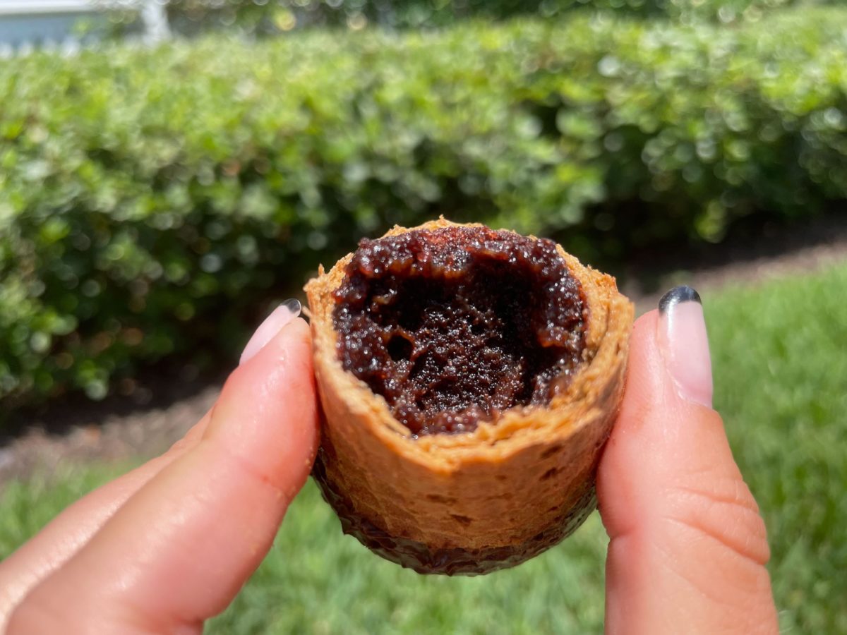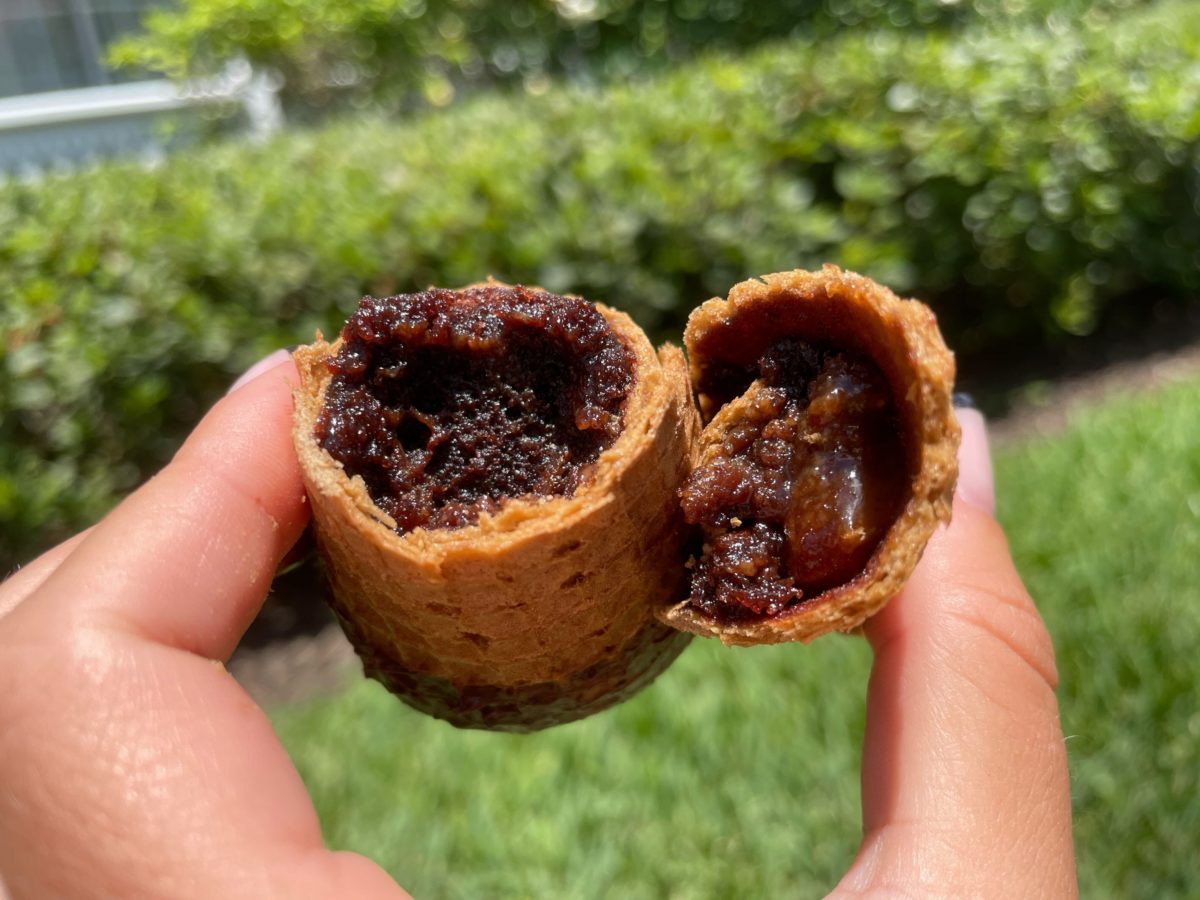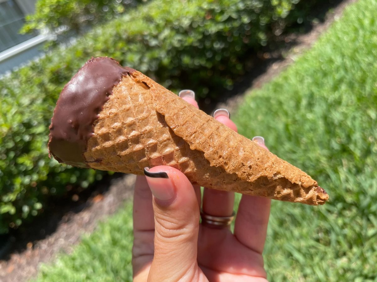 There was chocolate syrup at the very bottom of the cone. It was an extra sweet element to an already very sweet treat that we don’t think was needed.