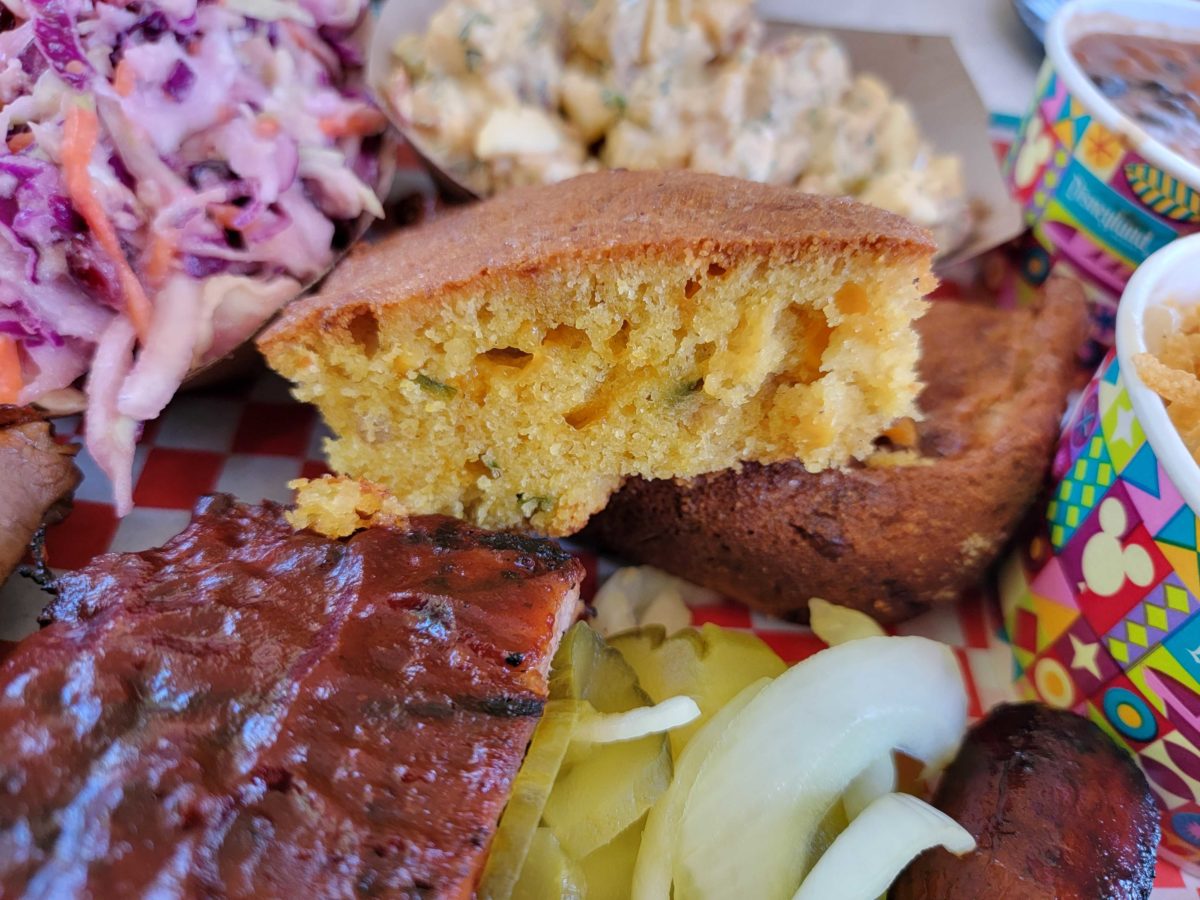 Surprisingly good, especially for a theme park. Cornbread is often far too dry and monotonous in flavor, but this cornbread is moist and delicious, almost like a cake. The addition of jalapeños and a little bit of cheese goes a long way to mix things up and bring some variety, spice, and surprise to the old standby.