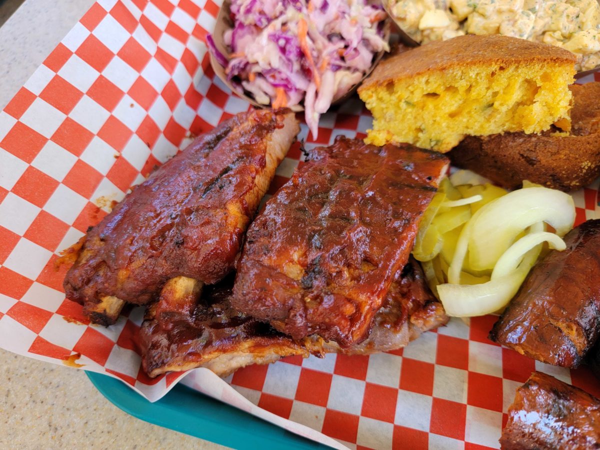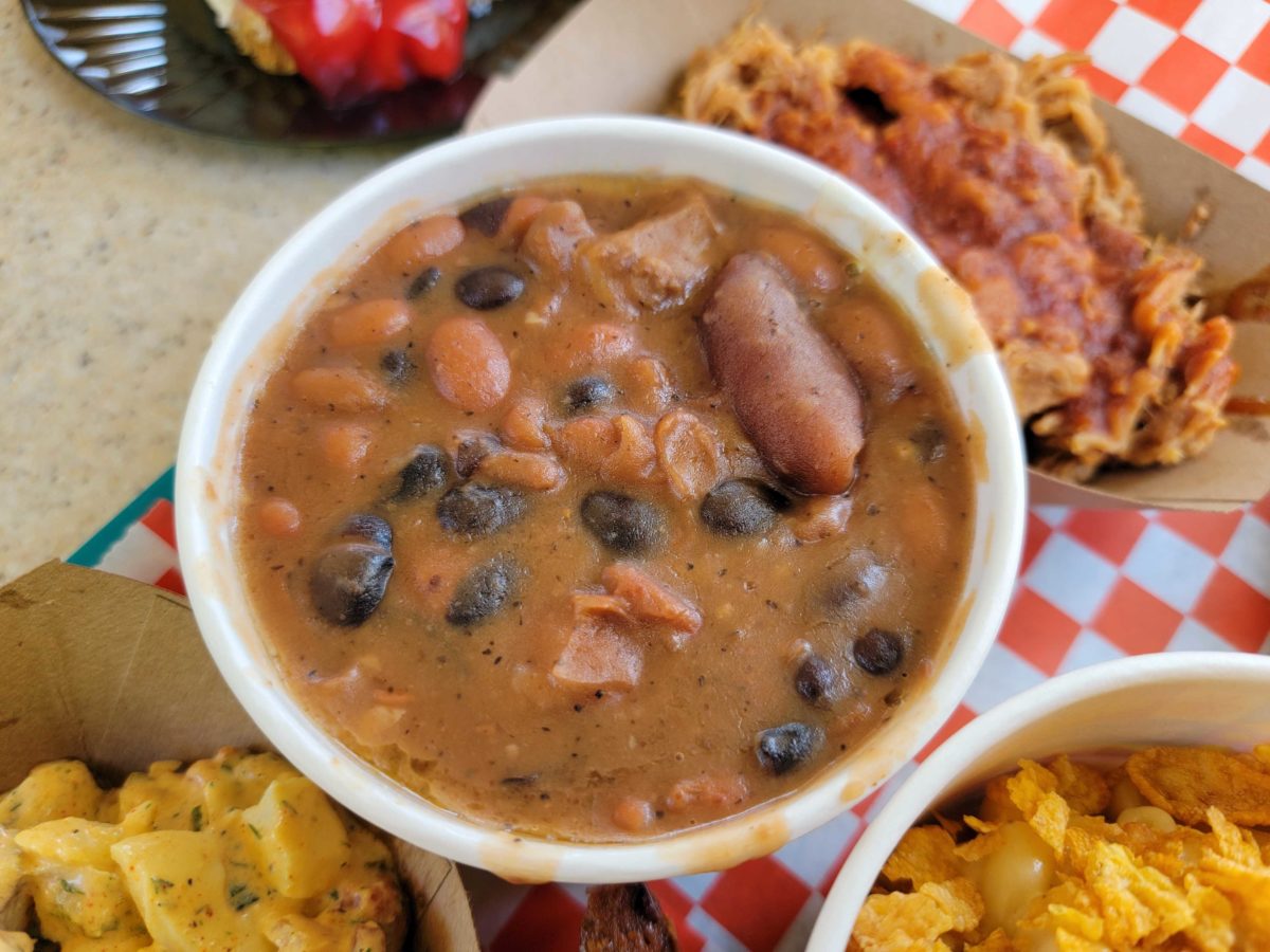You can get a St. Louis-style BBQ-rubbed chicken, a North Carolina-style BBQ pulled pork sandwich, or a Kansas City-style BBQ spare ribs entrée. The Family Platter includes all three plus all the sides, so we opted for that. The new Impossible BBQ Burger does not come included in the platter.