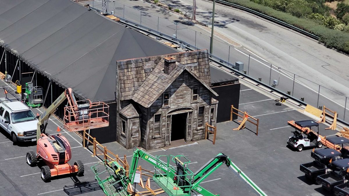 A close up look at the façade rumored to be for Scarecrow, an original maze. It may (or may not) be related to Scarecrow: The Reaping from Halloween Horror Nights 27 at Universal Orlando Resort.