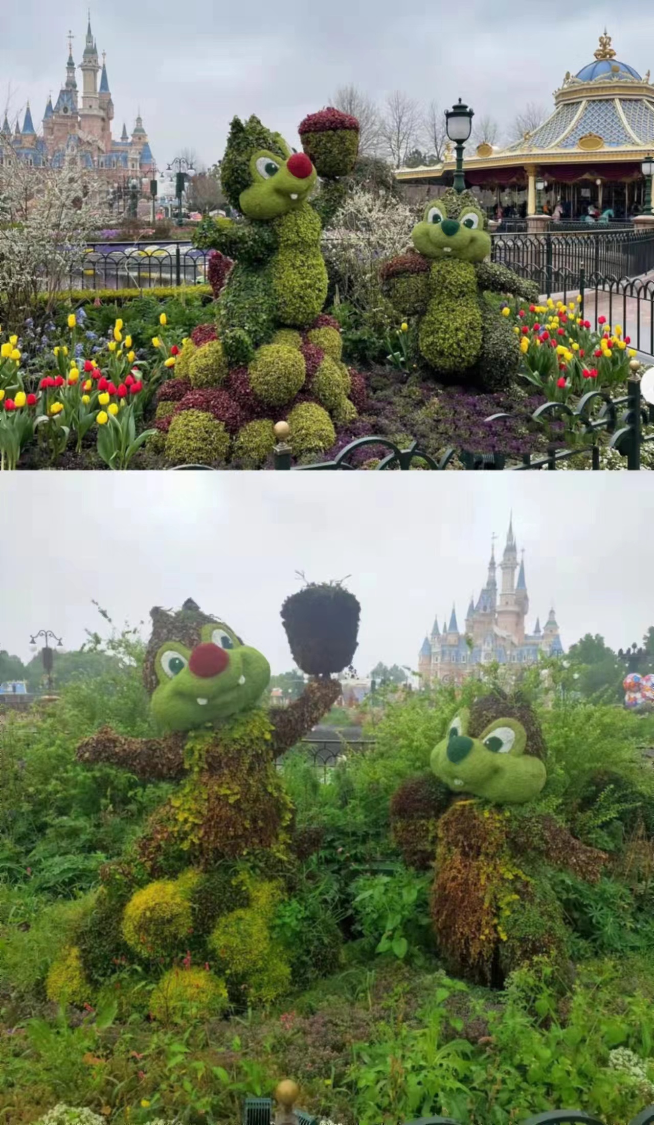 Shanghai Disneyland has been closed since March 21 due to the continuing lockdown in Shanghai, which is now entering its eighth week. Now, photos have surfaced on Twitter depicting the state of the park’s landscaping and character topiaries as crews have been unable to perform upkeep around Shanghai Disneyland.
