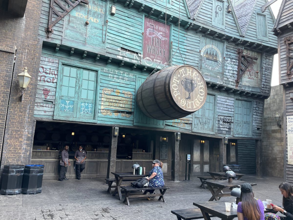 There were some issues at the Hopping Pot, and the location was temporarily closed. Team Members were directing guests to the Fountain of Fair Fortune and the Leaky Cauldron for Butterbeer and other beverages.