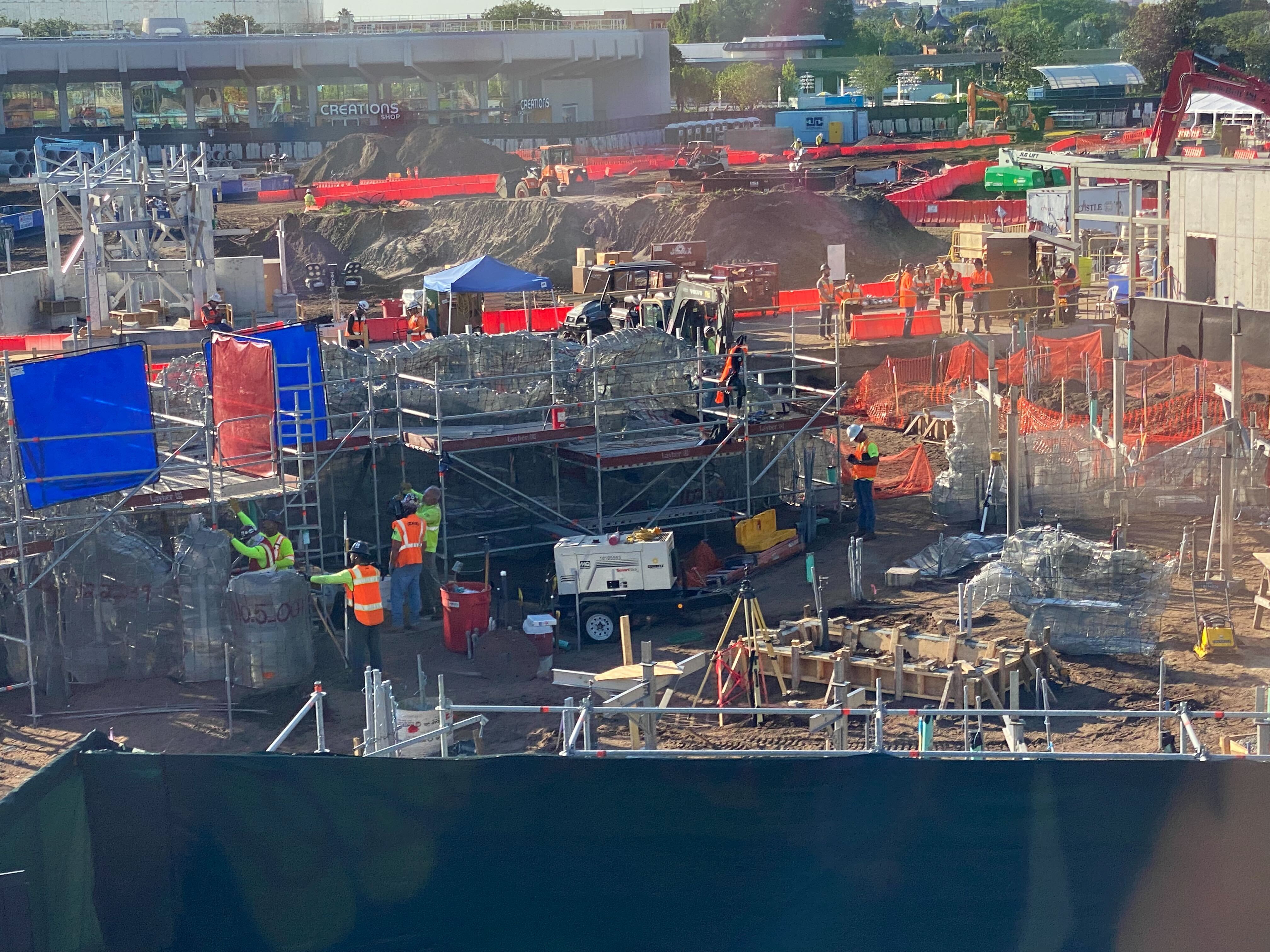 Nearby, plenty of scaffolding and equipment was seen, likely working on the ridge of rockwork that divides the attraction from the lagoon, seen in the concept art below;