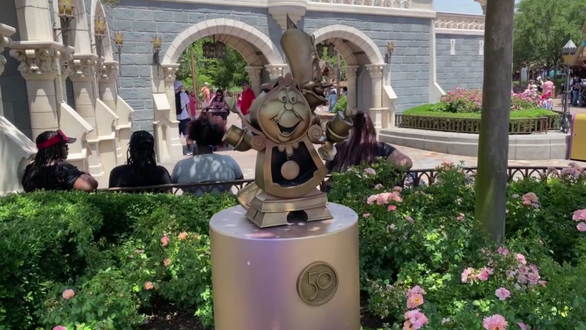 At the statue of Lumiere and Cogsworth, we heard the sound of a ticking clock, ending with a chime.