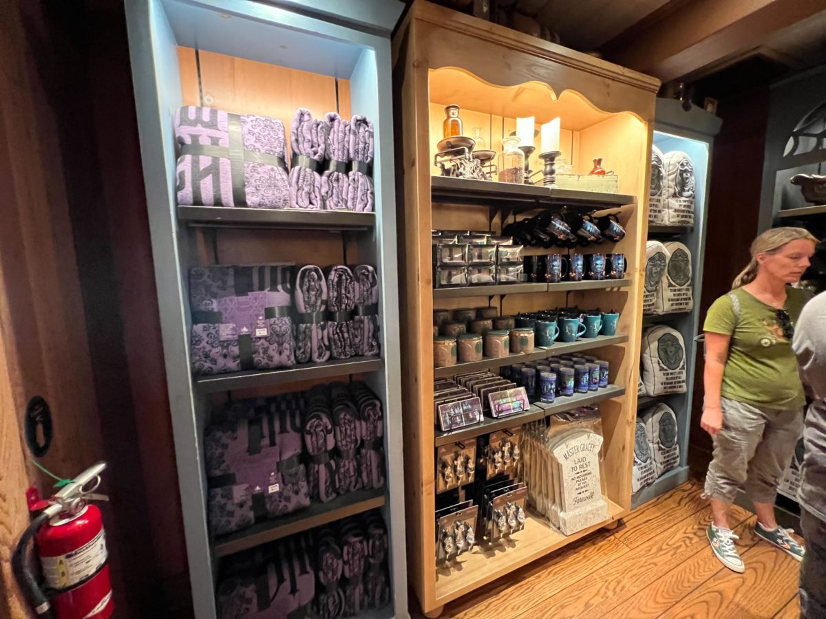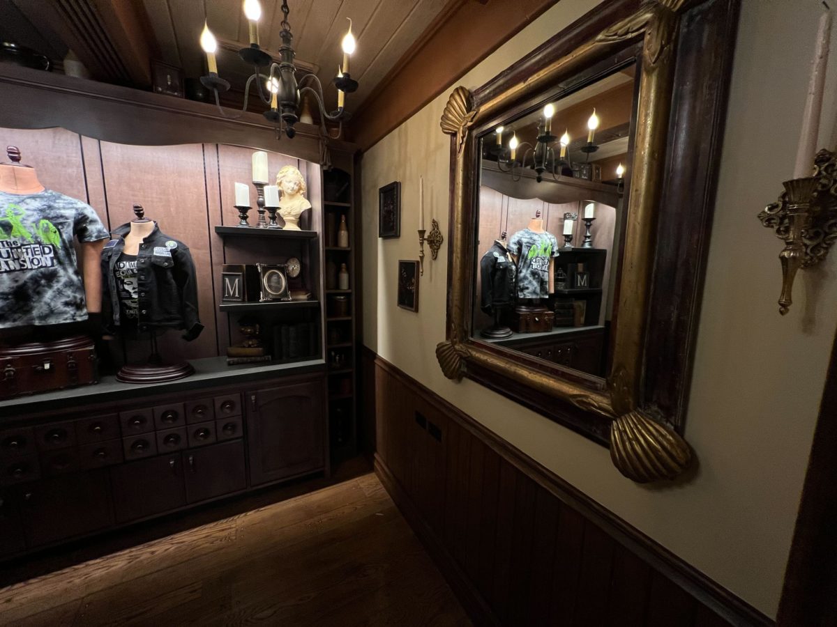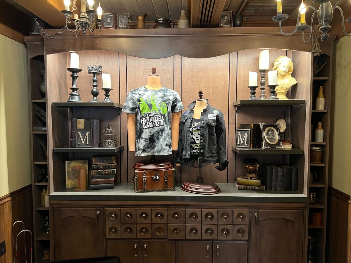 Behind it sits a new display, featuring props and merchandise inspired by The Haunted Mansion.