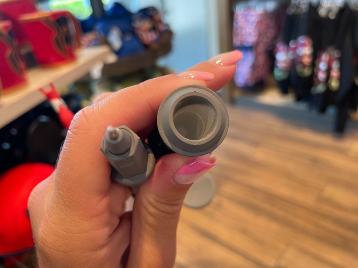 The bottom of the lamppost comes off to reveal the pen.
