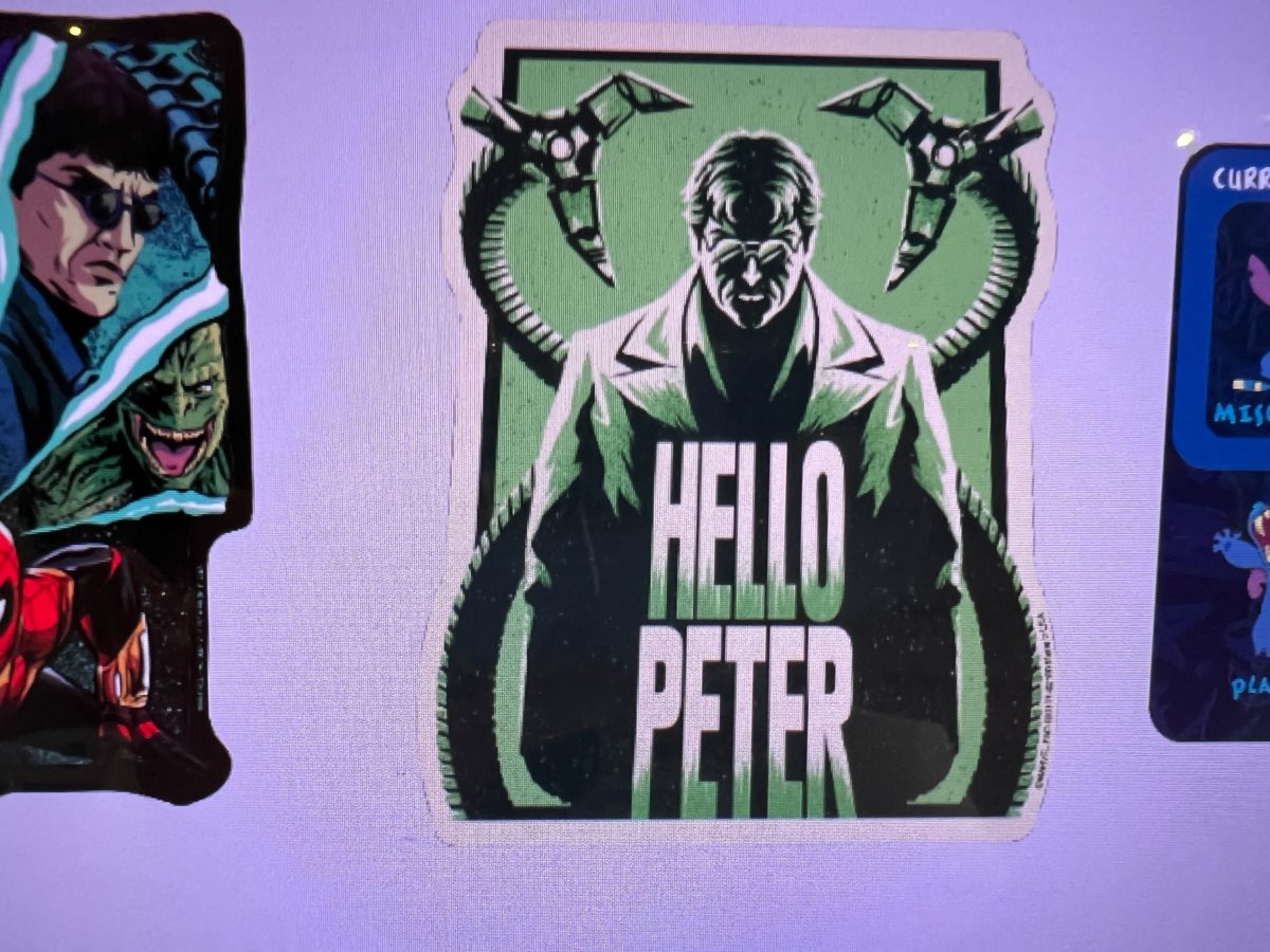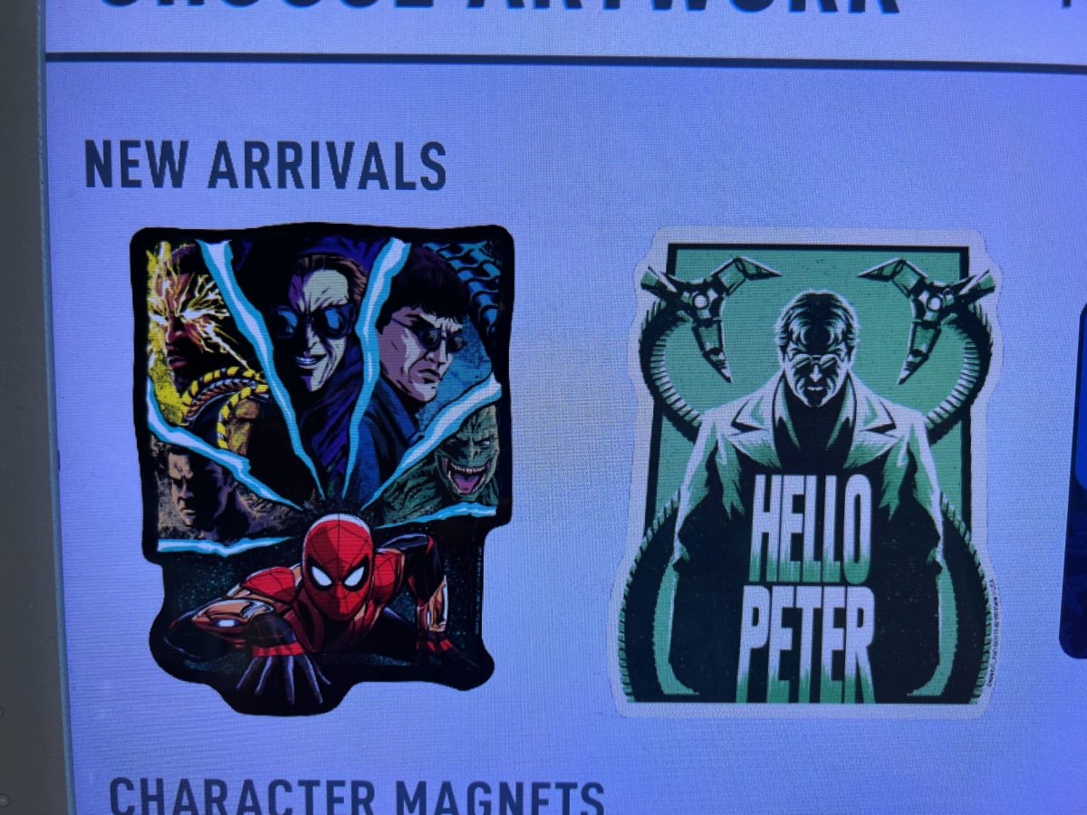 Finally, this green magnet features Doc Ock and reads “Hello Peter.”